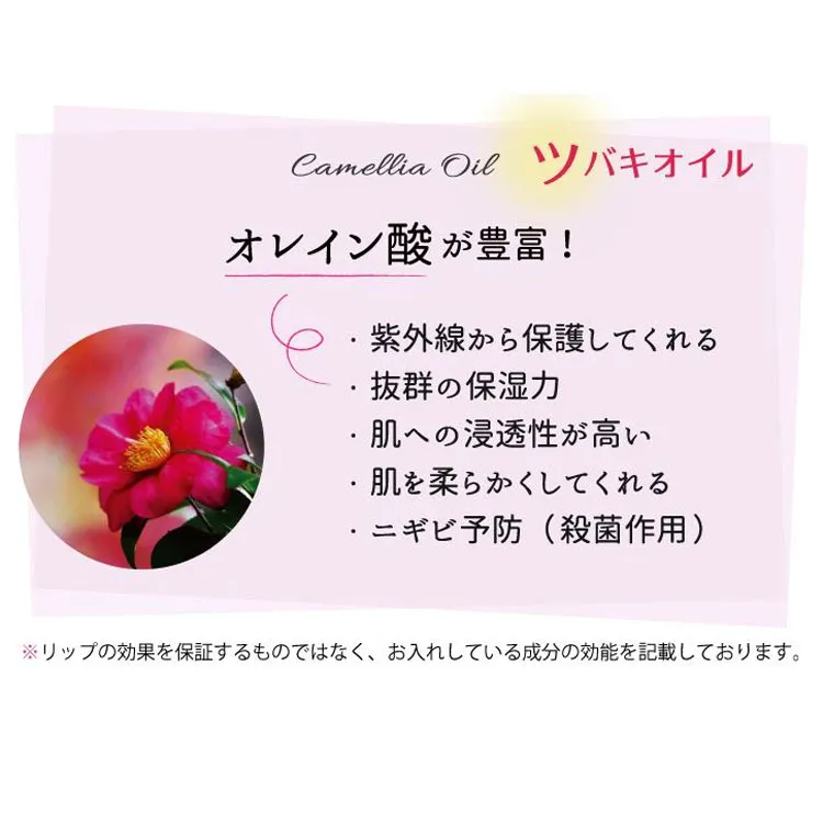 ティントリップ特有の「唇の乾燥しやすさ」もカバー。新たに天然成分を改良し、2種類の天然フラワーオイル、ローズヒップオイルとツバキオイルを配合しました。女性の敏感な唇を守り、潤いを保ちます。