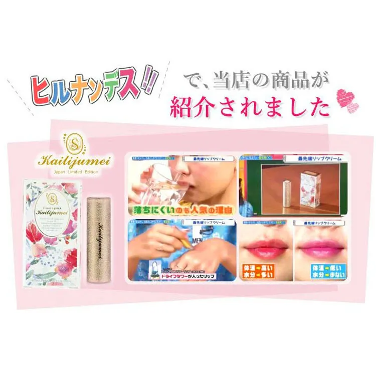 「kailijumei(カイリジュメイ)」は、香港生まれの新興コスメブランド。海外ブランドコスメのOEM製造を通して培った高い技術力は、世界の女性が虜になる「カイリジュメイ フラワーリップ」を誕生させました。 本物の小さな可愛いドライフラワーと、純度の高い金箔をリップの中に包み込んだ幻想的な美しさと愛らしさが魅力。タイ、次いで日本に上陸し、SNS上で話題沸騰! 日本から世界へ瞬く間に人気が広がっています。