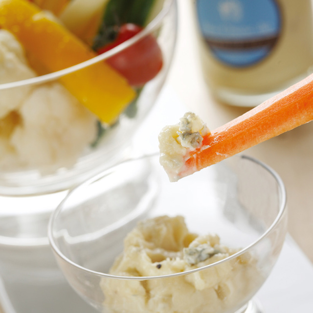 グリッシーニやハード系のパン、スティック野菜などとの相性も良く、ワインやビールのお伴に最適です。パーティーや大切なひと時に北海道ブルーチーズディップをご用意ください。