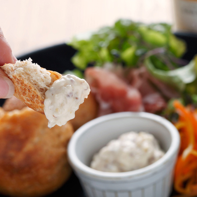 クラッカーやカリカリに焼いたトースト、 スティック野菜、温野菜、ソーセージなどにつけてお楽しみください。