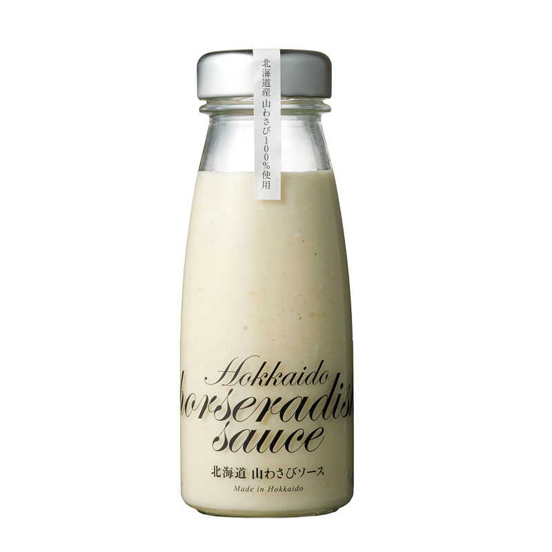 北海道特有の香りの良い山わさびを100%使用したピリッとした辛口のソースです。北海道の山わさびの風味をご賞味ください。