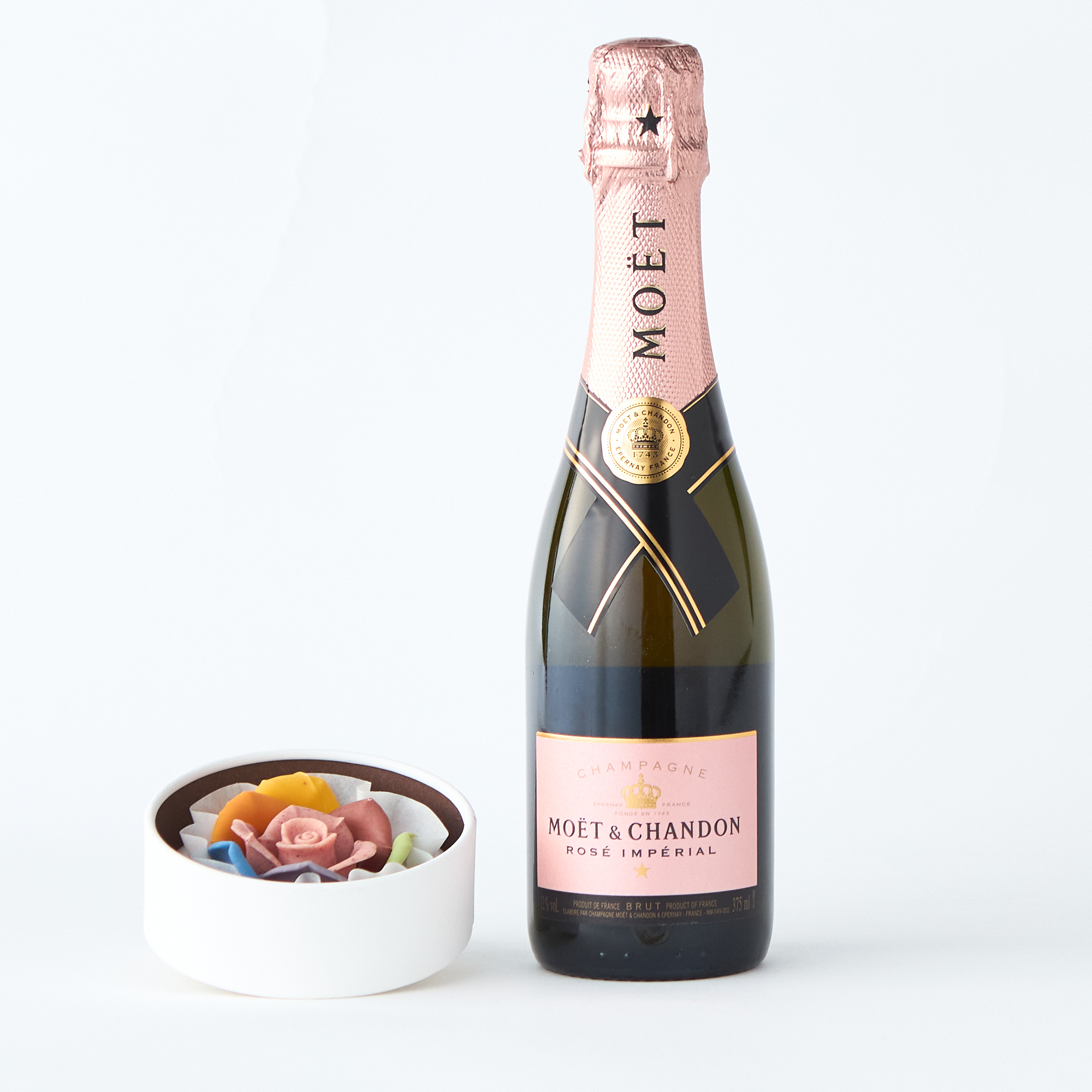 華やかなモエ ロゼと、選べるローズ型チョコレートで心を込めたギフト。フルーティなシャンパンと繊細なチョコレートが、特別な時を彩ります。