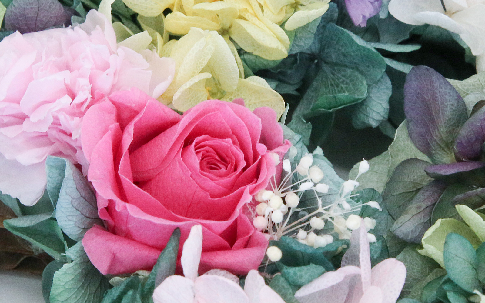 フラワーアレンジメントは当店の専任スタッフがお花ひとつひとつにこだわって製作しています。 生花に特殊な加工を施したプリザーブドフラワーは、水を与える必要がなく、枯れないお花として美しい状態で長期間お楽しみいただく事ができます。