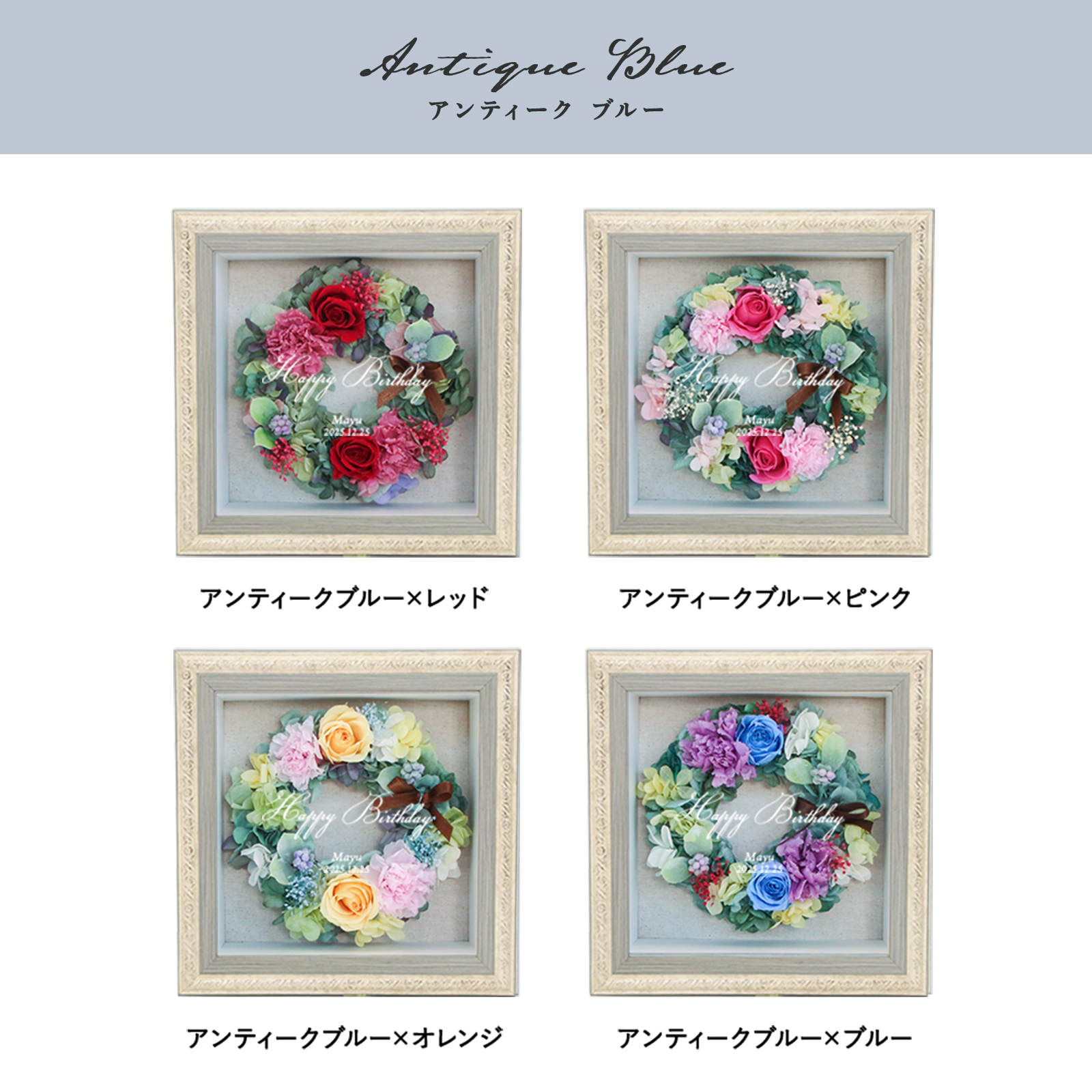 2色のフレームカラー×4色のフラワーカラーからお選びいただけます。