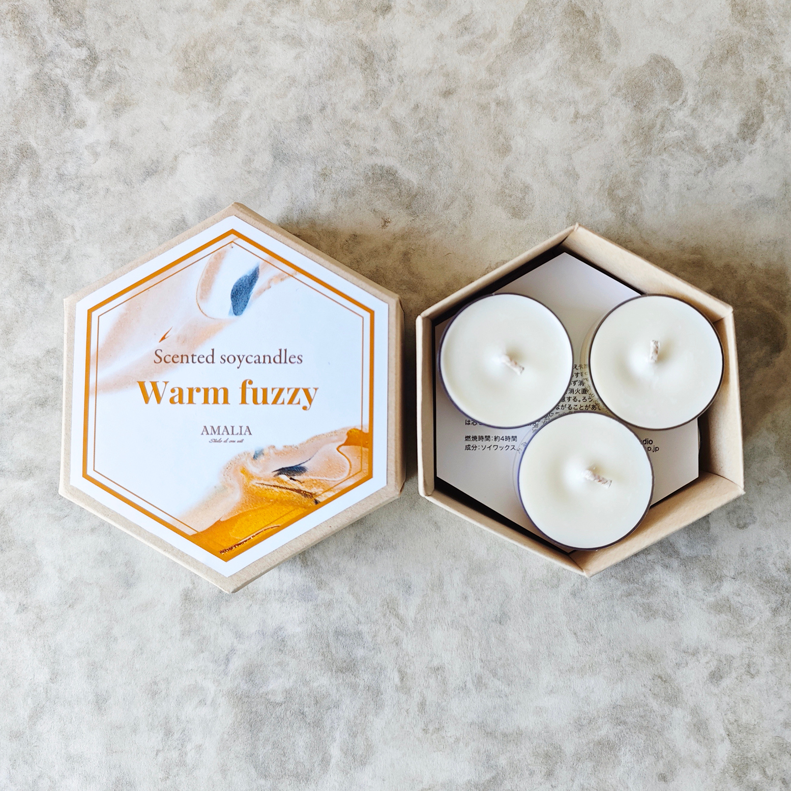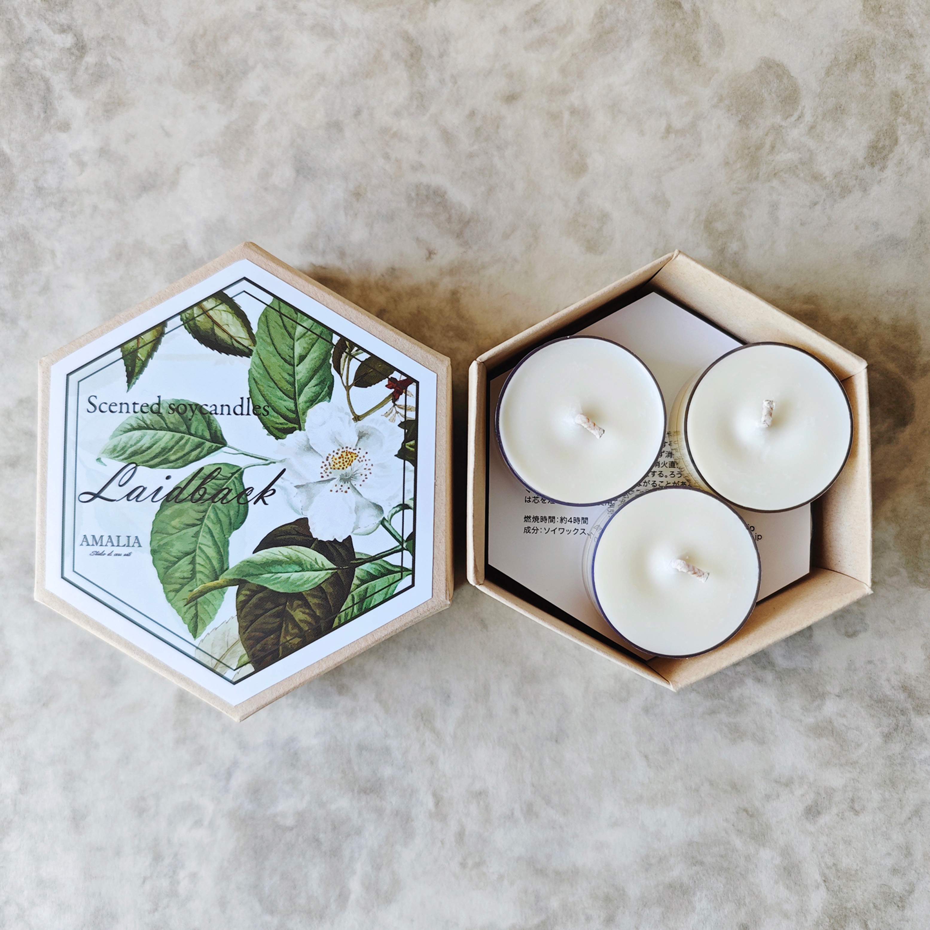 AMALIA studio は、ワックス製品をハンドメイドにて制作しているブランドです。 100%ソイワックスキャンドルや、ワックスディフューザーなど、ワックスで表現できるものをひとつひとつ心を込めて制作しています。 様々な種類のワックスがある中で、その素材に最適な形と表現方法を模索しながら制作をしています。 過ぎ行く毎日の中で、心安らぐ空間と時間をAMALIAがお手伝いできれば幸いです。