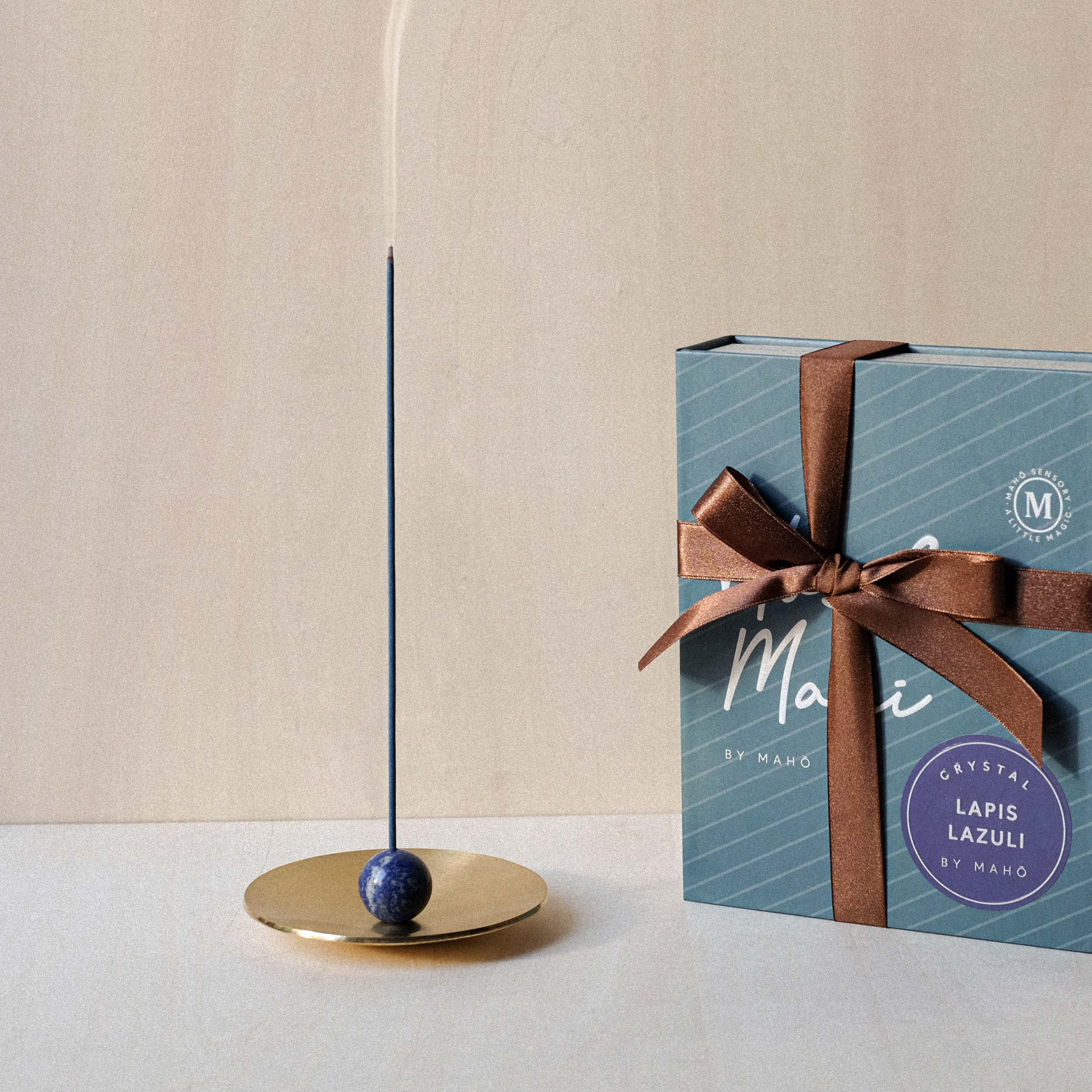 ハンドメイドのブラスディッシュと厳選された半貴石がペアになったインセンスホルダー。ミニマルなデザインと、ブラス×クリスタルのエレガントな組み合わせは、心と身体を癒し浄化してくれるようなスモークエナジーを作ります。ブラスディッシュの上に灰が落ちるようにデザインされており、MAHŌ Sensory Sticksにフィットし、あなたをまだ見ぬ世界へといざないます。