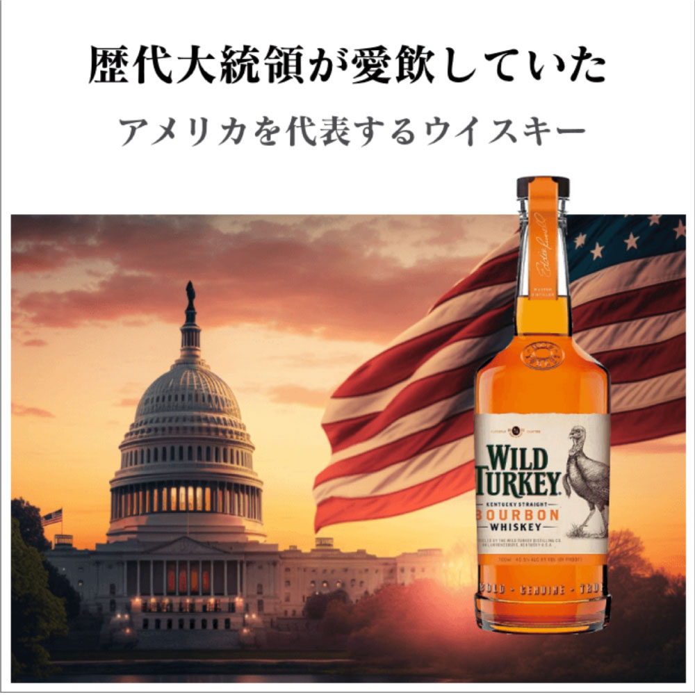 大口注文・法人のお問い合わせはこちらアメリカの歴代大統領が愛飲していたウイスキーとして知られているワイルドターキー。 アイゼンハワー大統領が飲んでいたことは当時のニュースで大きな話題になりました。