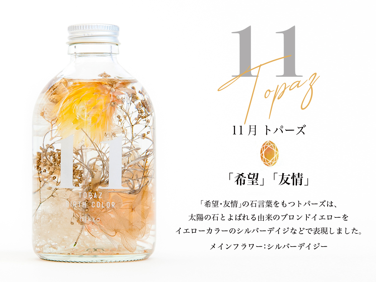 お誕生日プレゼントとしてはもちろん、誕生石をテーマにしたキラキラと宝石のような輝きが楽しめるので、ホリデーシーズンのギフトとしても最適です。贈る方に合わせてお好きなお花、カラー、ナンバーなどからも楽しくギフト選びができます。