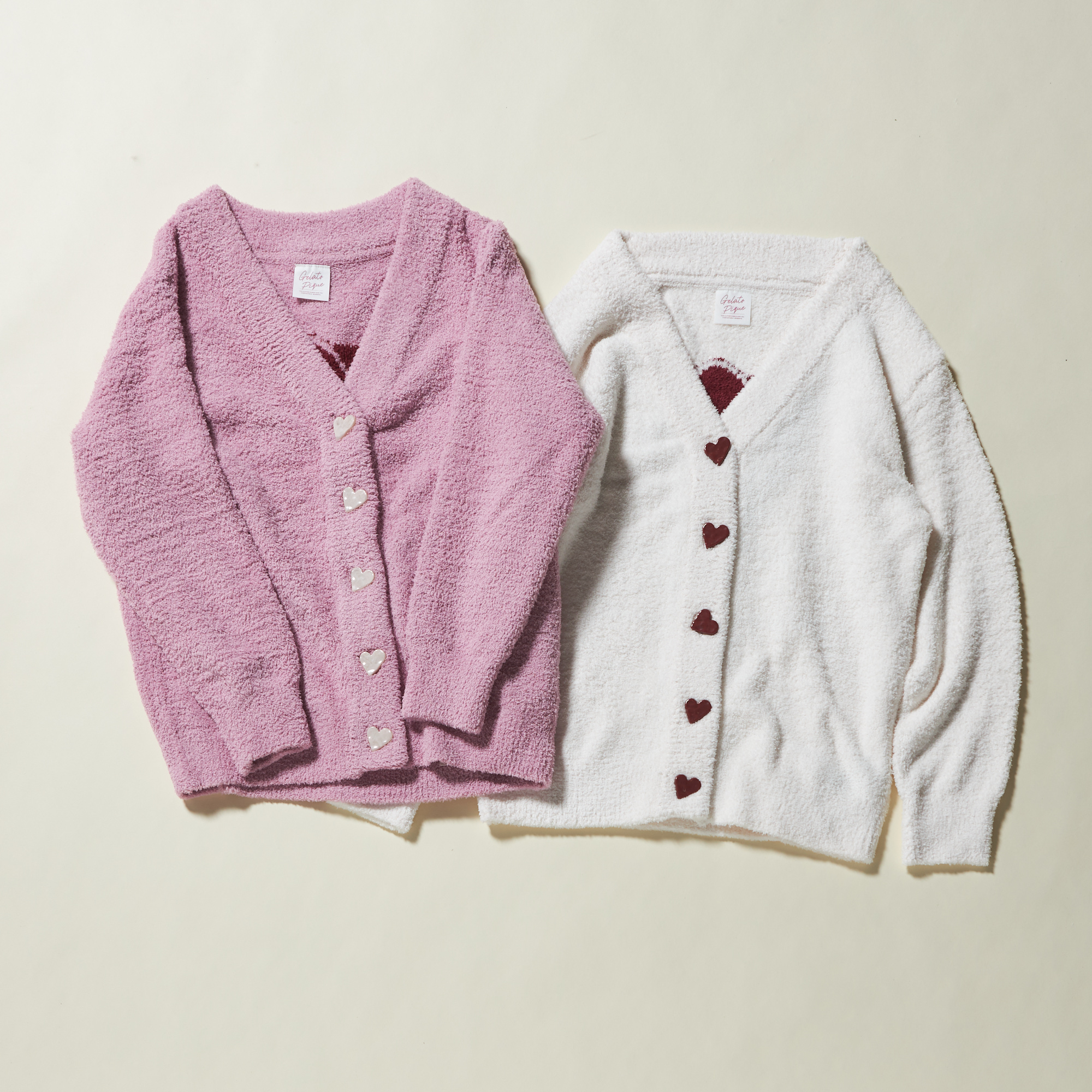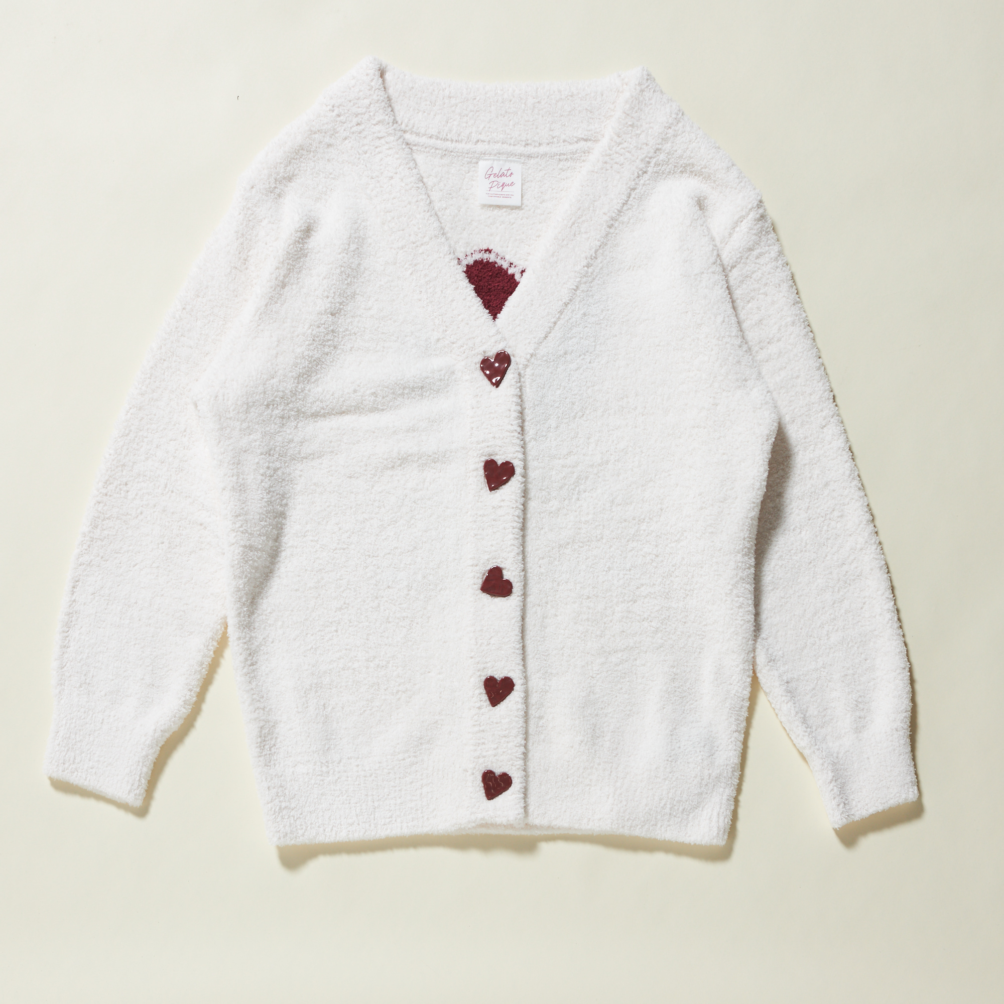 背中の大きなハートジャガードと刺繍のバックスタイルが可愛いカーディンガンの登場です。"ルームウエアがジェラートピケに恋をした″というコンセプトの、初恋のようにピュアでスイートなコレクション。ふわふわもこもこのリッチな肌触りの素材感で、少し肌寒い春先まで重宝します。何枚あっても嬉しいカーディガンはプレゼントとしても喜ばれそう。