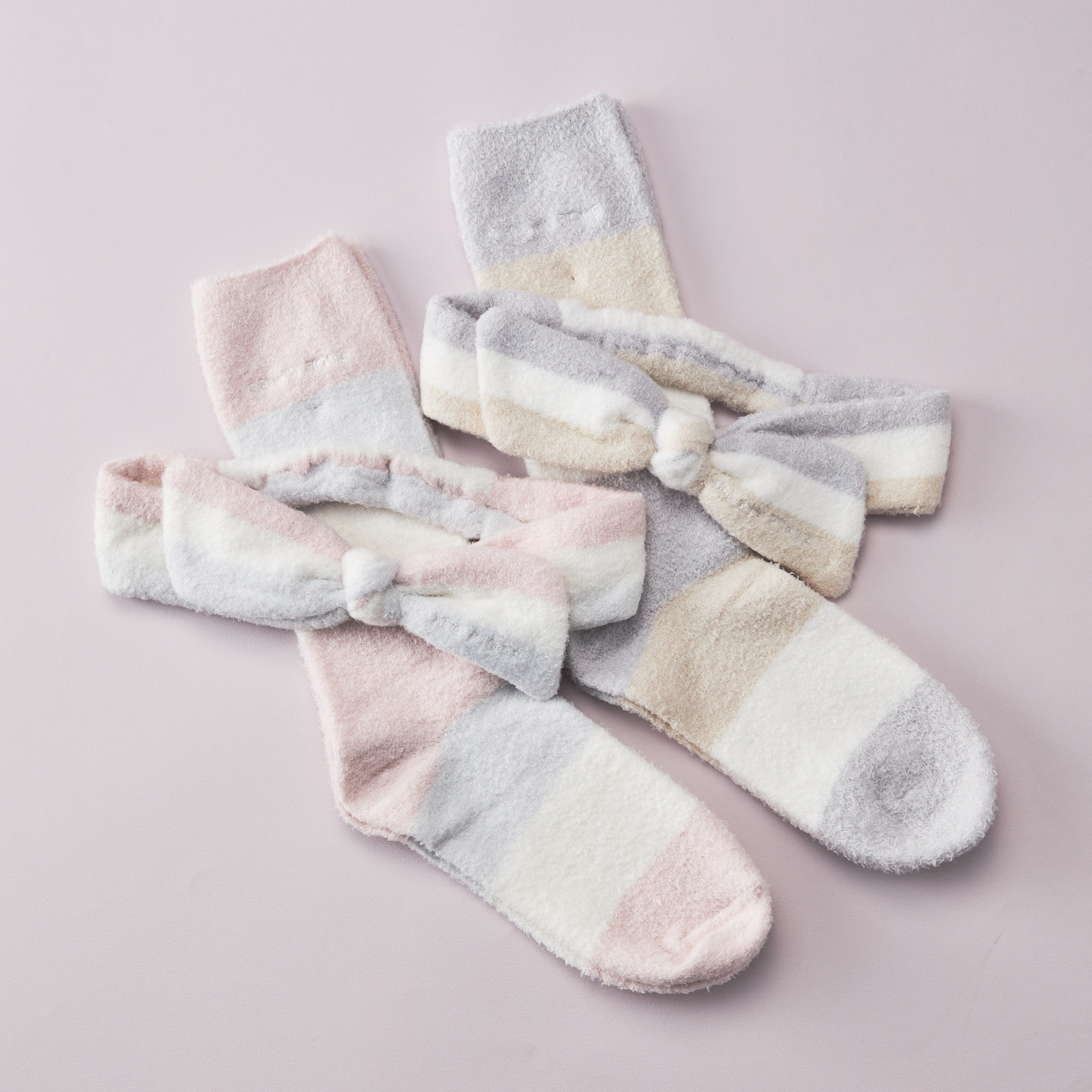 初夏に向けた爽やかなカラーリングが目を惹く、ルームソックスとヘアバンドの2セットです。ご家庭で気軽に洗えるので、毎日気持ちよくお使いいただけます。肌に吸い付くようなしっとりとなめらかなスムーズィー素材。いくつ持っていても困らないので、プレゼントとして喜ばれること間違いなしです。