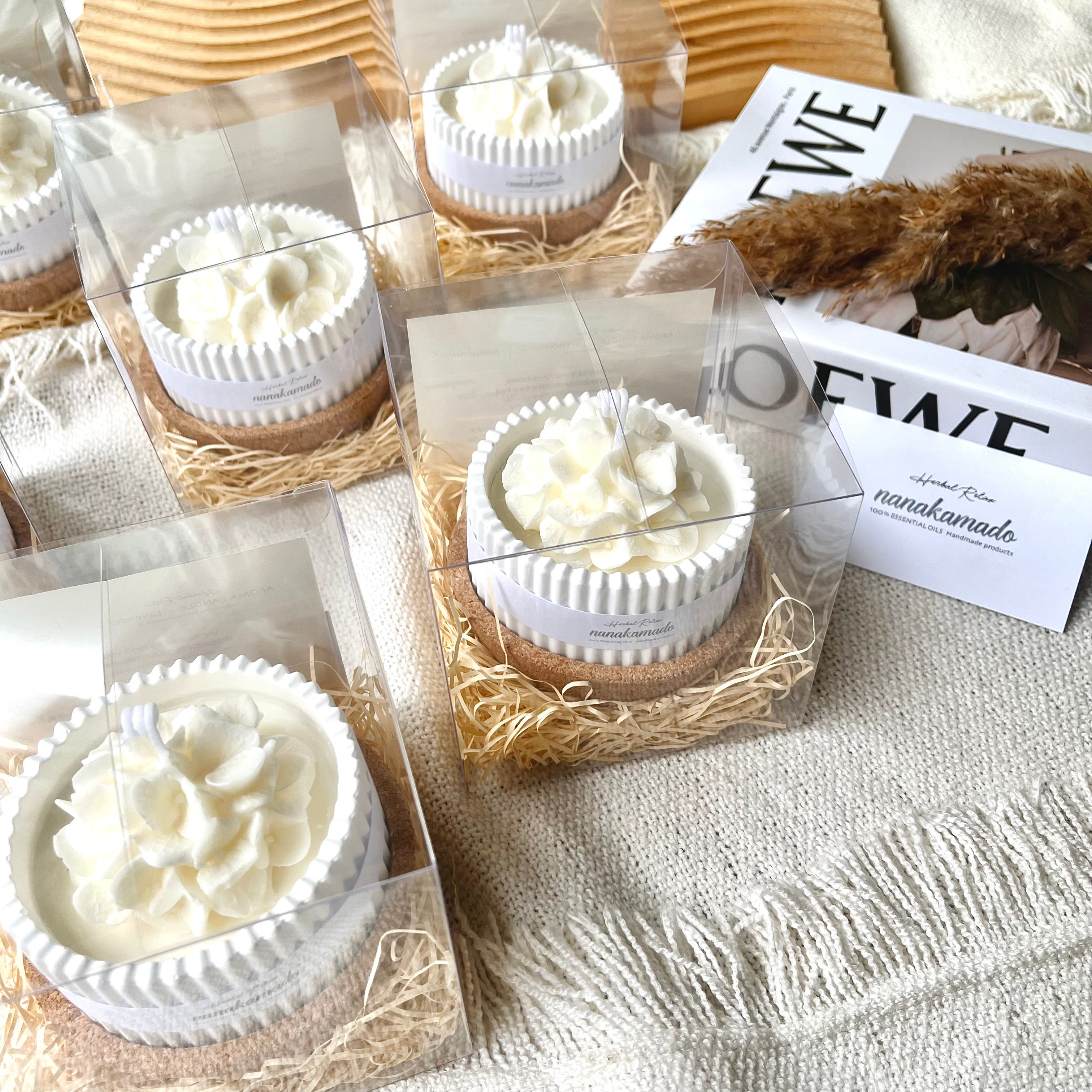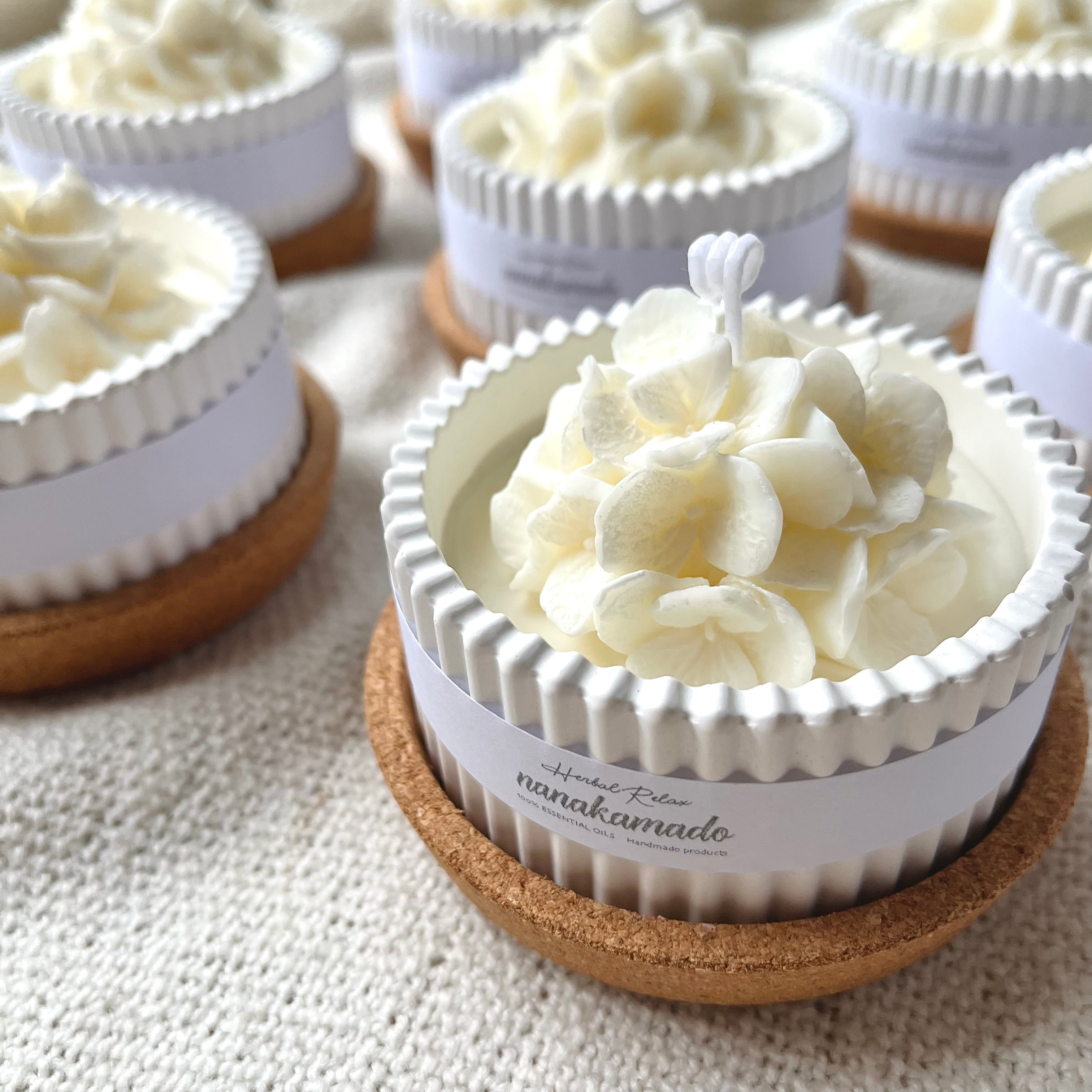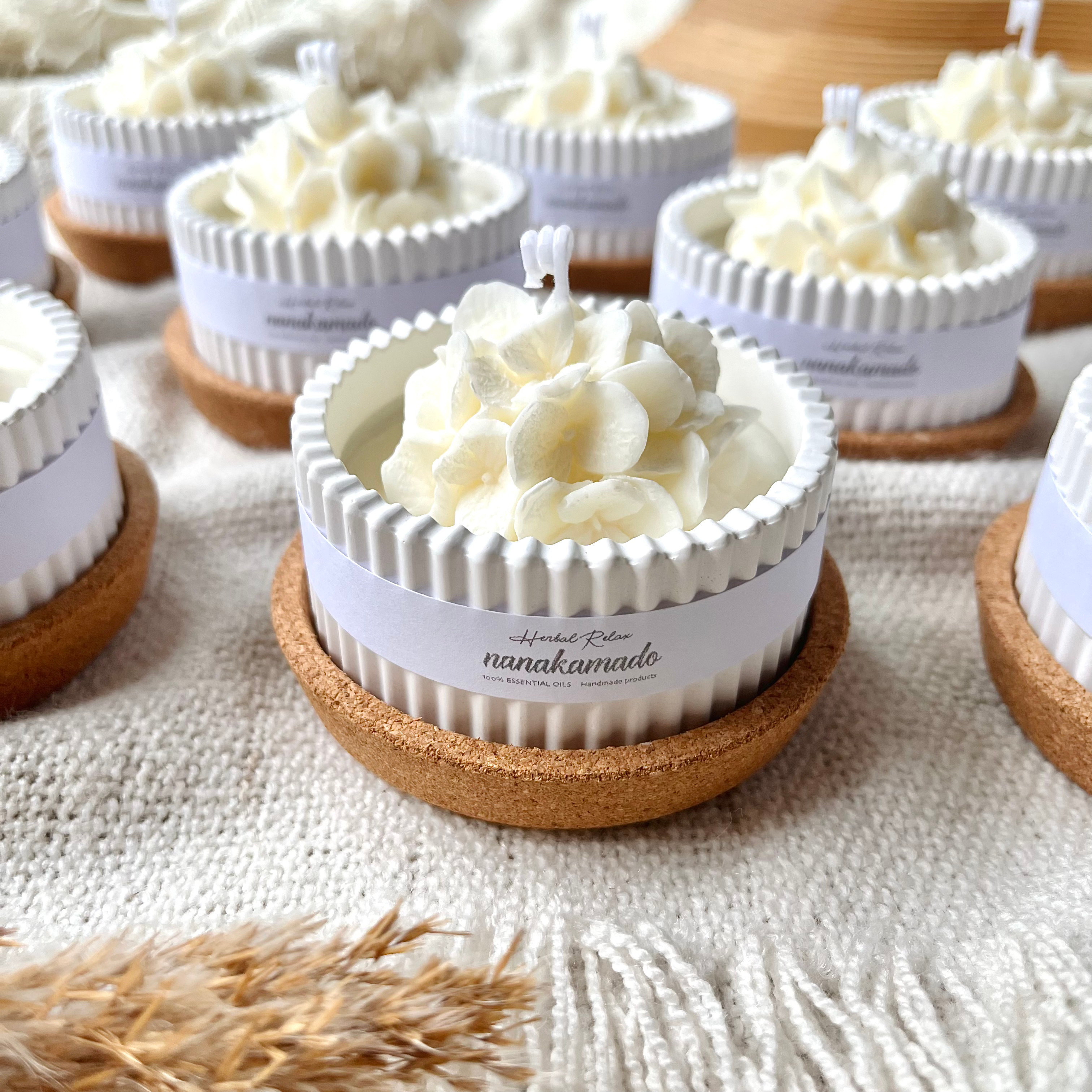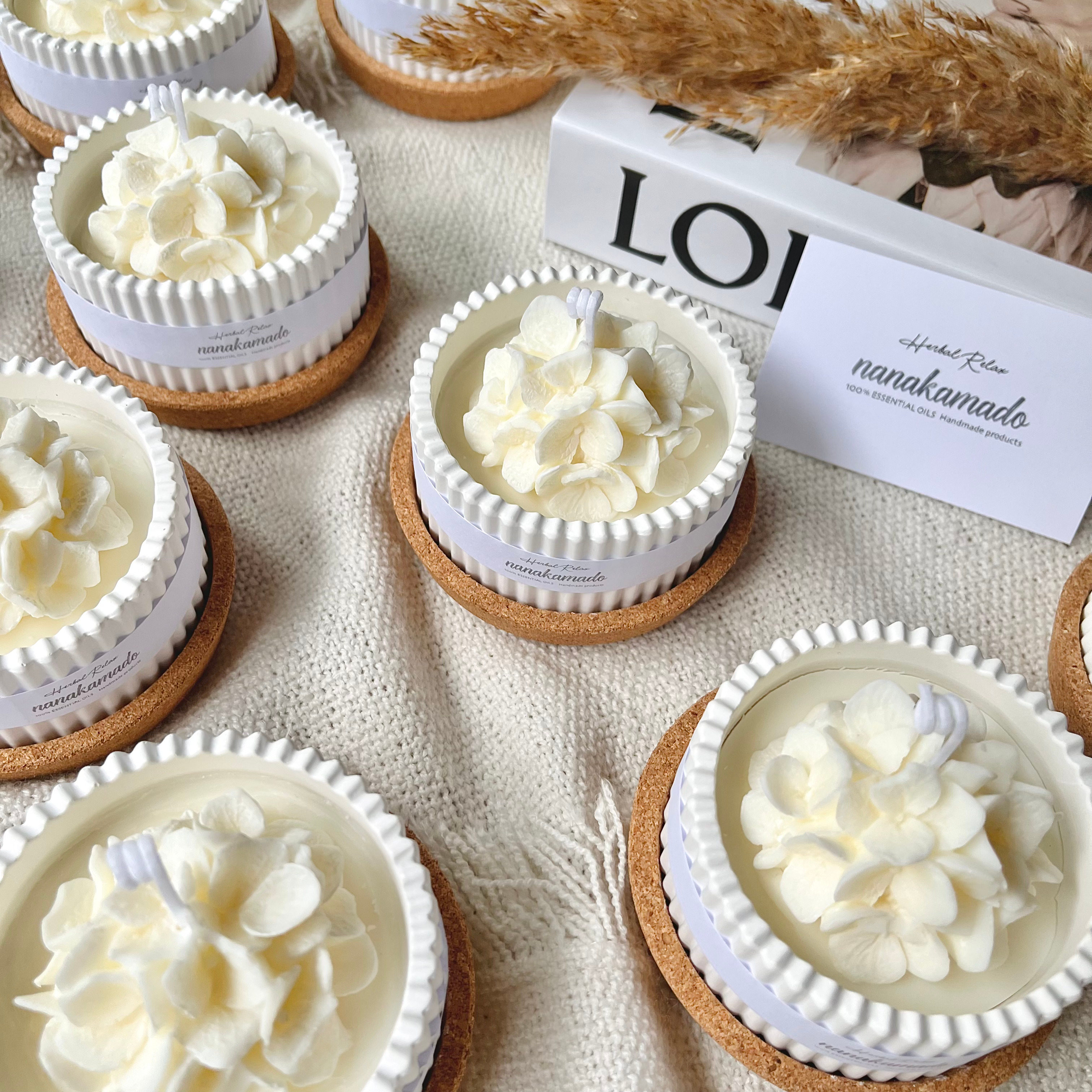 大口注文・法人のお問い合わせはこちらnanakamadoのアロマキャンドルは、アロマの香りをたくさん詰め込んだおしゃれなフレグランスアイテムです。 本体はお花のような形が乙女心をくすぐる見た目で、お部屋を可愛く飾ってくれます。 すべて手作業で行っているため、""あなただけのアロマキャンドル""になります。 自然の香のある心地よいライフスタイルを気軽に楽しめます。 火を使用せず自然に香るので、小さなお子様がいるご家庭でも安心して香りを楽しめます。 キャンドルとしてご使用いただくと、とても良い香りが広がります。 お家で過ごすリラックスタイムに火を灯して、極上のひとときに。 ※火をご使用の際はご注意くださいませ。 ※燃焼中はとても熱くなります。十分にご注意してご使用ください。 キャンドルの香りが薄くなってきたら キャンドルに直接、もしくは容器にアロマ精油をたらしていただいても大丈夫です。 ※精油によっては着色してしまうものがあります。