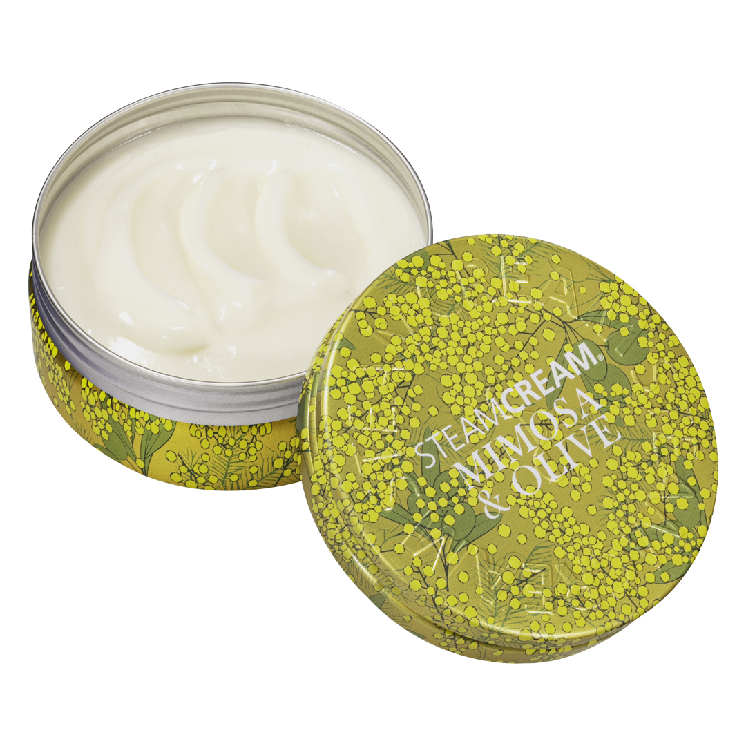 オートミールで「うるおす」「まもる」。スチームクリームは、蒸気のチカラと自然の恵みから生まれた天然由来成分98.5%の保湿クリーム。これひとつで顔もからだも髪までしっかり保湿。ハンドケアとしてもおすすめ。ミモザとオレンジの優雅な香りが包み込みます。