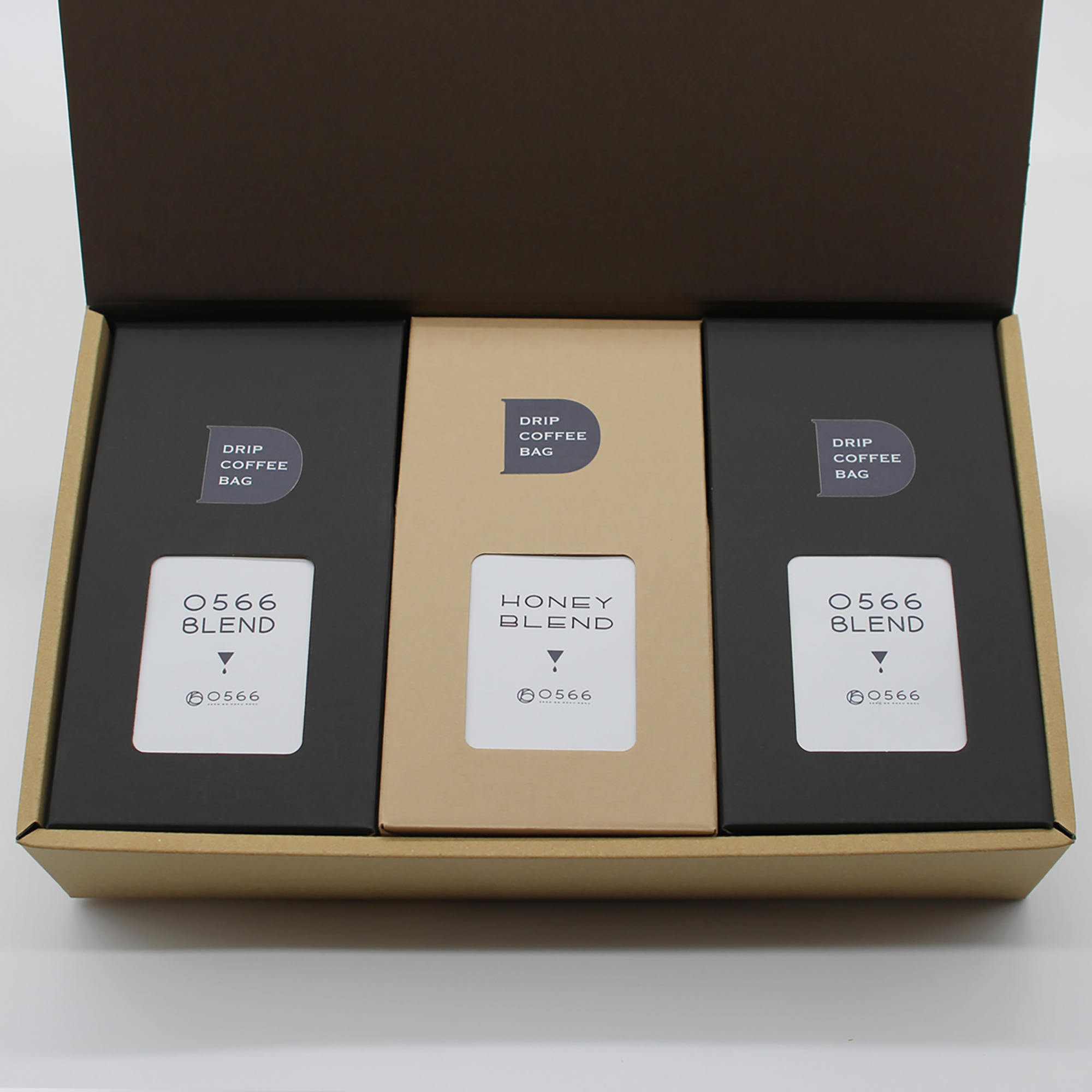 大口注文・法人のお問い合わせはこちら人気の「0566ブレンド」と「ハニーブレンド」の2種類のドリップバックがギフトセットになりました! クラフトボックスに入り3つ並ぶとスタイリッシュなイメージでギフトにピッタリです!送る相手にコーヒー器具がなくても心配ありません。大切なあの人へいかがでしょうか?