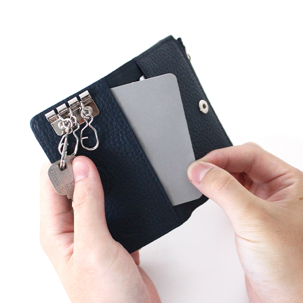 大口注文・法人のお問い合わせはこちらカード入れが3箇所と、さらにファスナー付きのコインケースがついており、マルチに使えるキーケース兼コインケースになっています。 財布を持たずに車でお出かけしたいとき、たくさん荷物を持ちたくない時にこれ1つでおでかけできるのが嬉しいですね。