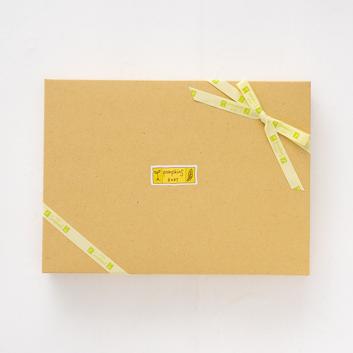 ギフトボックスにリボンを巻いてお届けします。 出産祝いの贈り物におすすめです。