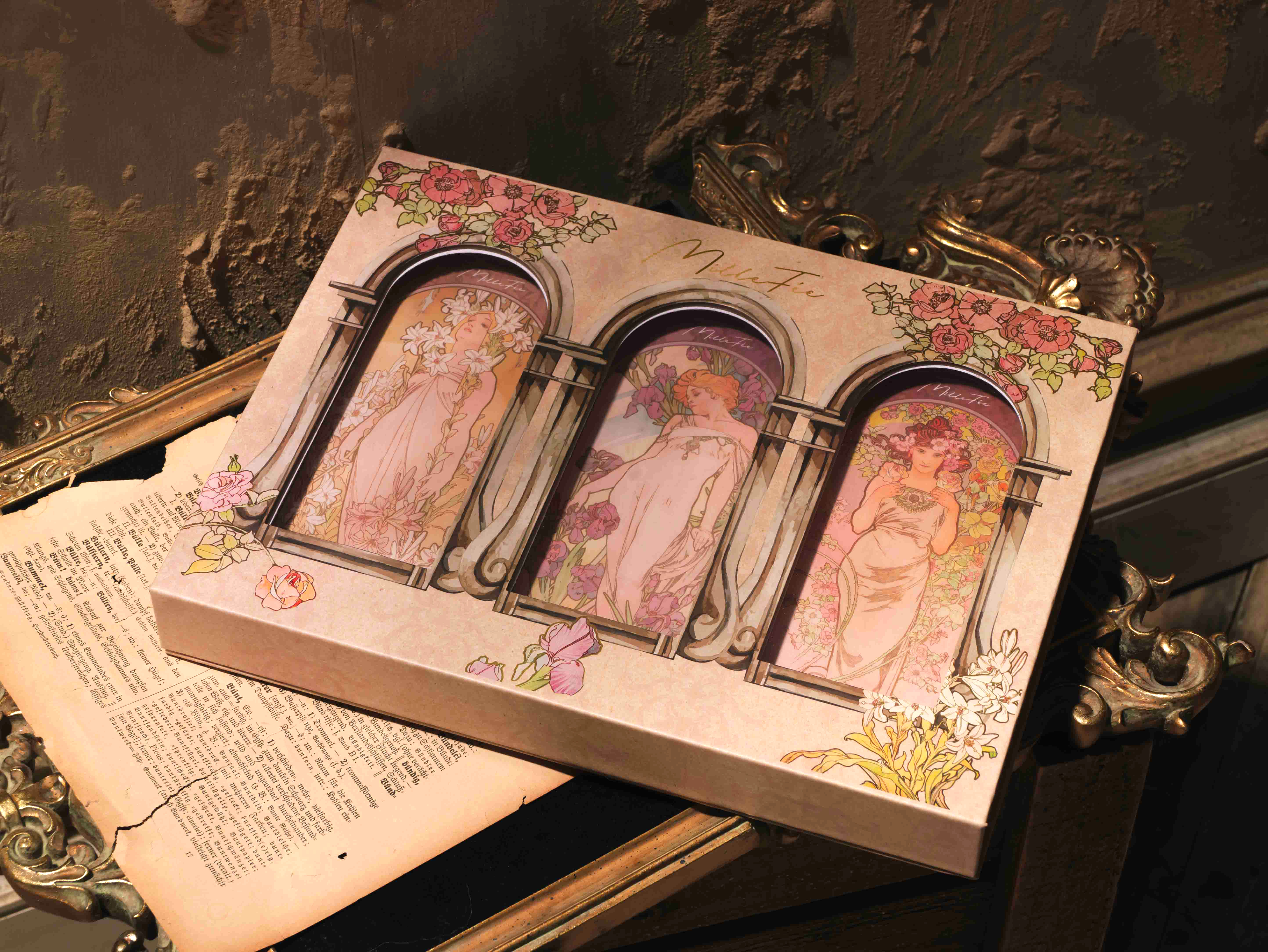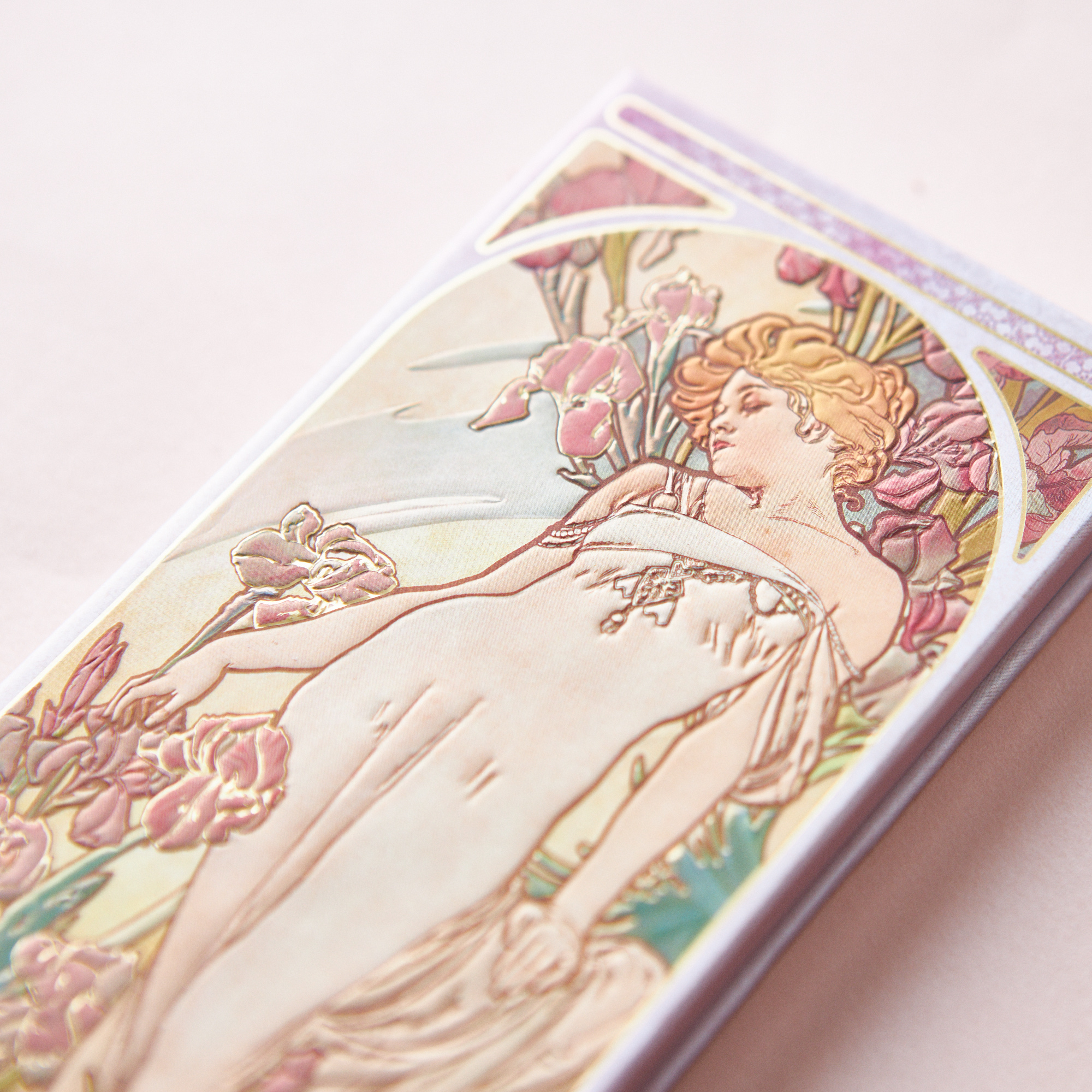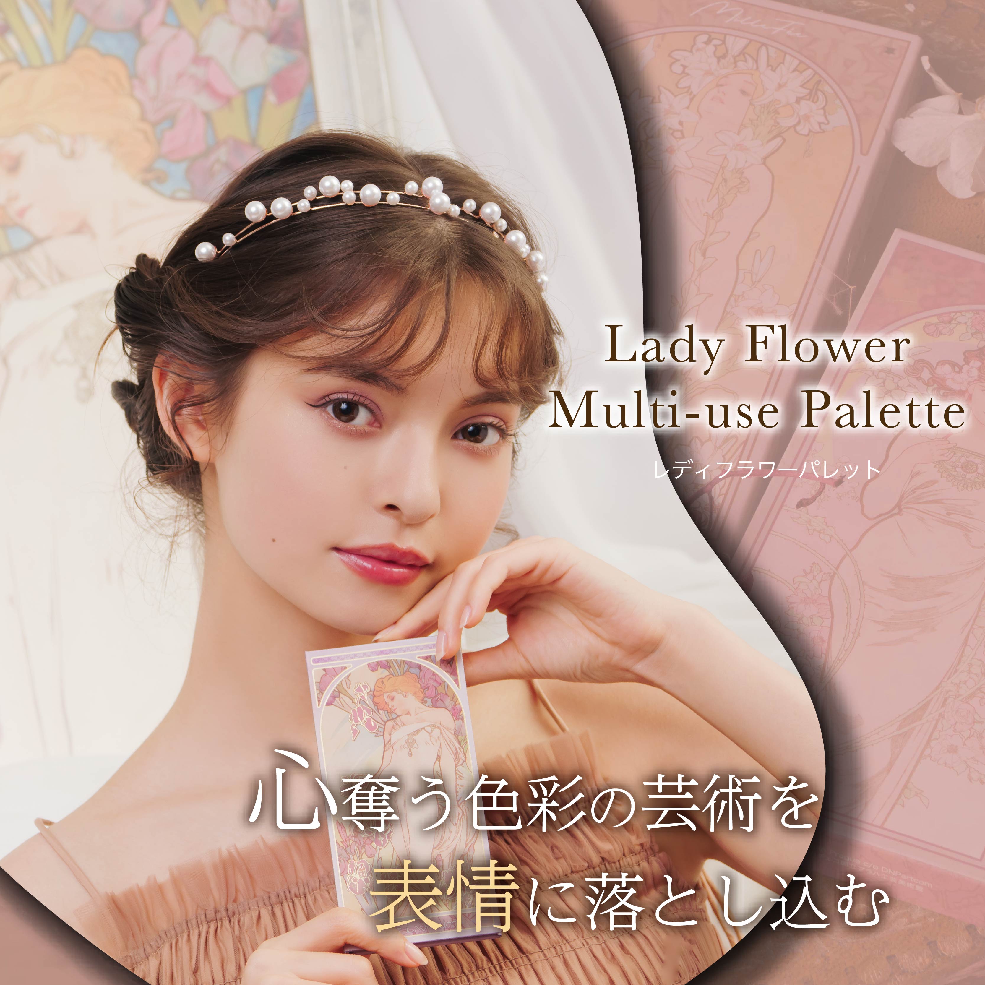 心奪う色彩の芸術を表情に落とし込む。絵画からインスピレーションを得たアイシャドウ・チーク・ハイライトに使える贅沢なマルチユーズパレット全3種が揃った数量限定のコスメボックスです。アルフォンス・ミュシャの連作『四つの花』から着想を得た美しいデザイン。使っても可愛い、飾っても可愛い、特別仕様!