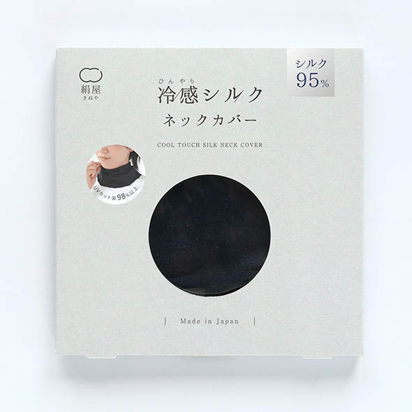 シルクを中心とした雑貨ブランド「絹屋」のシルク95%と高混率の接触冷感のネックカバー。着け心地はひんやり冷たく、肌に優しい手触りです。UVカット率は90%以上のため夏場のUV対策におすすめです。