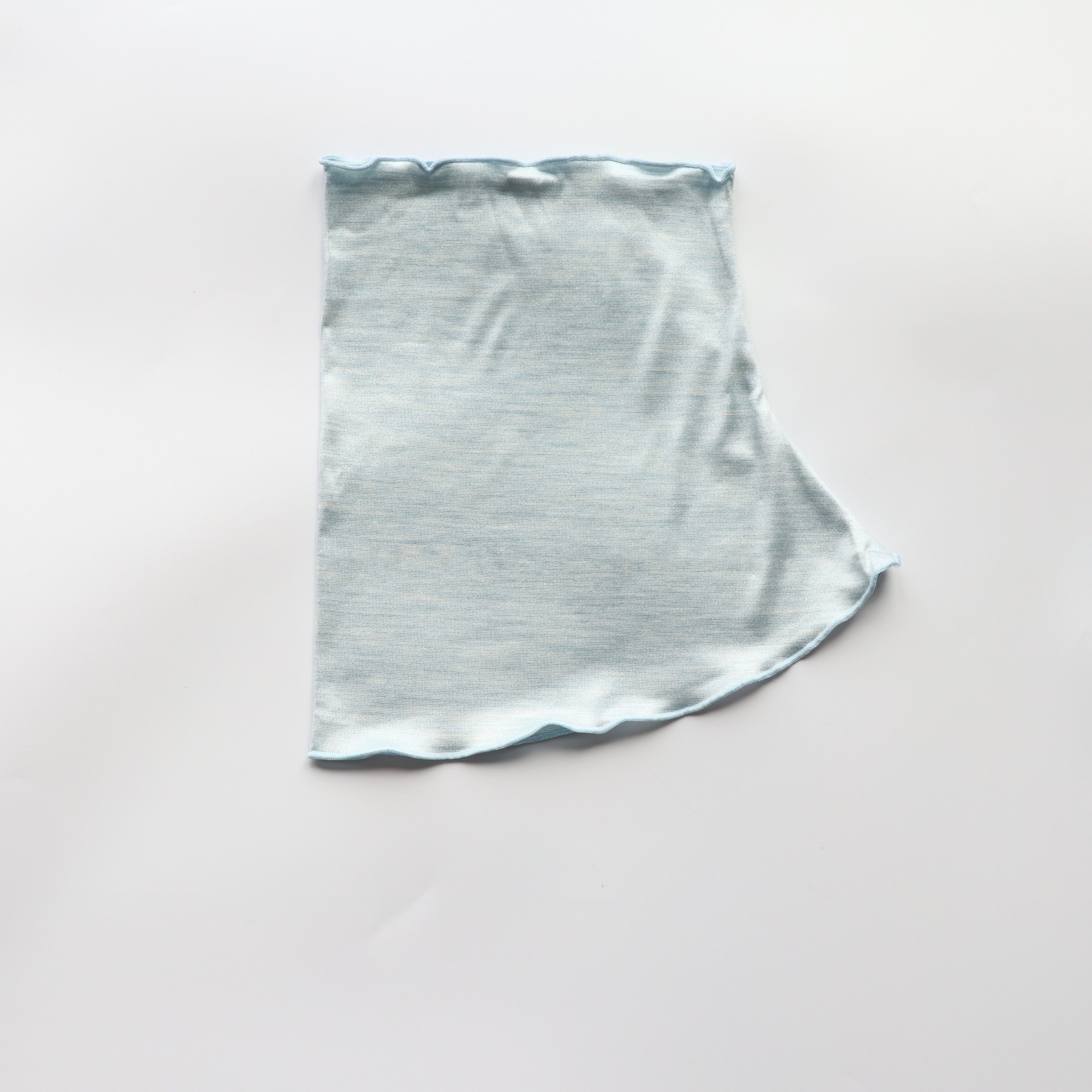 大口注文・法人のお問い合わせはこちらひんやり接触冷感シルク製ネックカバー。触れると冷たく、上品な光沢となめらかな肌触り。デコルテまで紫外線から守る長めのデザインです。