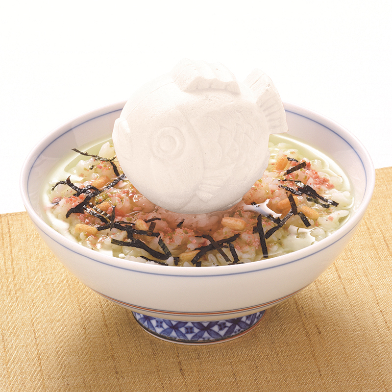 みそ汁最中(赤みそ・白みそ)、お吸物最中、お茶漬け最中(海苔・梅・たらこ)のセット。縁起の良い魚と言われる鯛がモチーフで、結婚の内祝いやプレゼントに最適です。