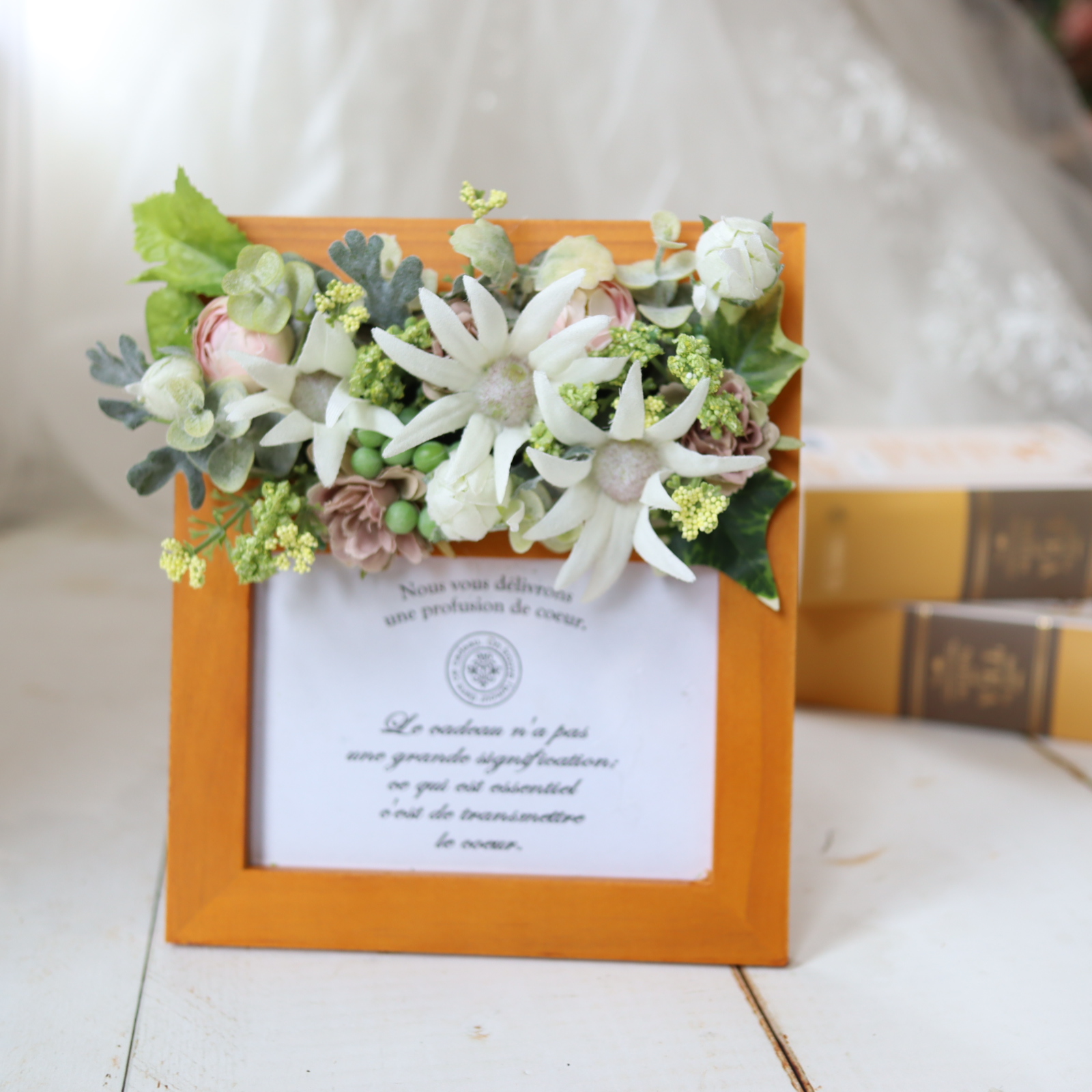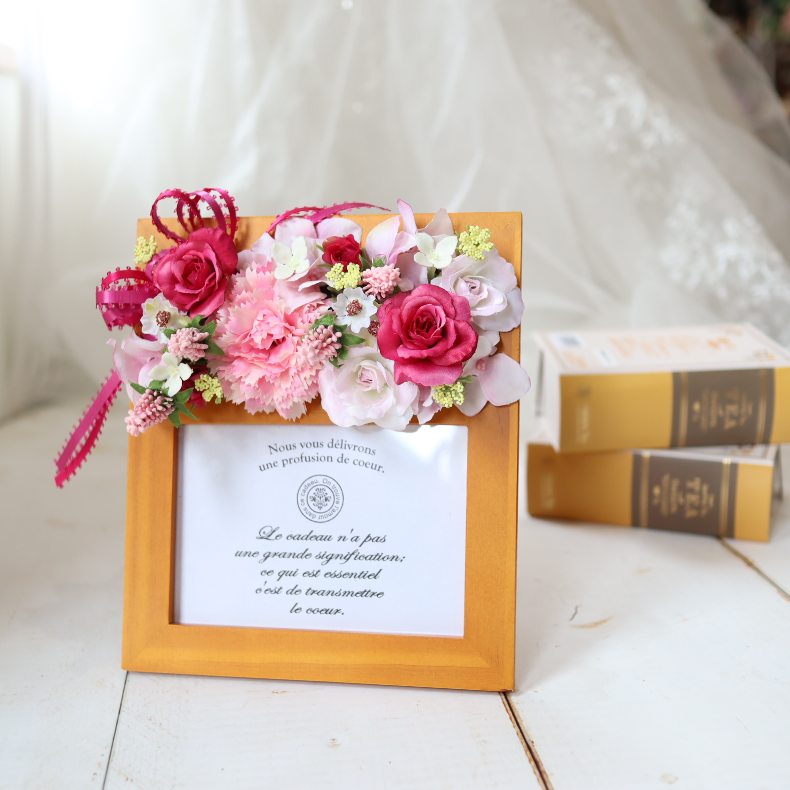大口注文・法人のお問い合わせはこちらアトリエ美鈴が選び抜いた上質なアーティフィシャルフラワーを使用しており、色褪せや散り落ちることなく、長期間その美しさを保ちます。特別な写真を、より特別なものに変えてくれるでしょう。