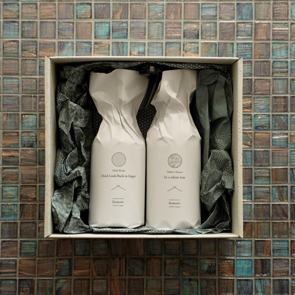 毎日のお掃除が癒しの時間になる、優しさを届ける「食器用洗剤」とあらゆる汚れに対応する「キッチン&マルチクリーナー」のギフトセットです。 それぞれのアイテムの香りは、使うシーンに合わせて一つずつ異なるオリジナル。 毎日の暮らしの気持ちを上げる「いい匂い」をつくるため、高知県産ゆず精油・青森県産ヒバ精油などの貴重な国産精油を含む100%天然精油だけを使用しました。 毎日の家事の時間をプラスに変える、使う度に豊かな気持ちになるように。 そんな想いを込めてつくった商品です。