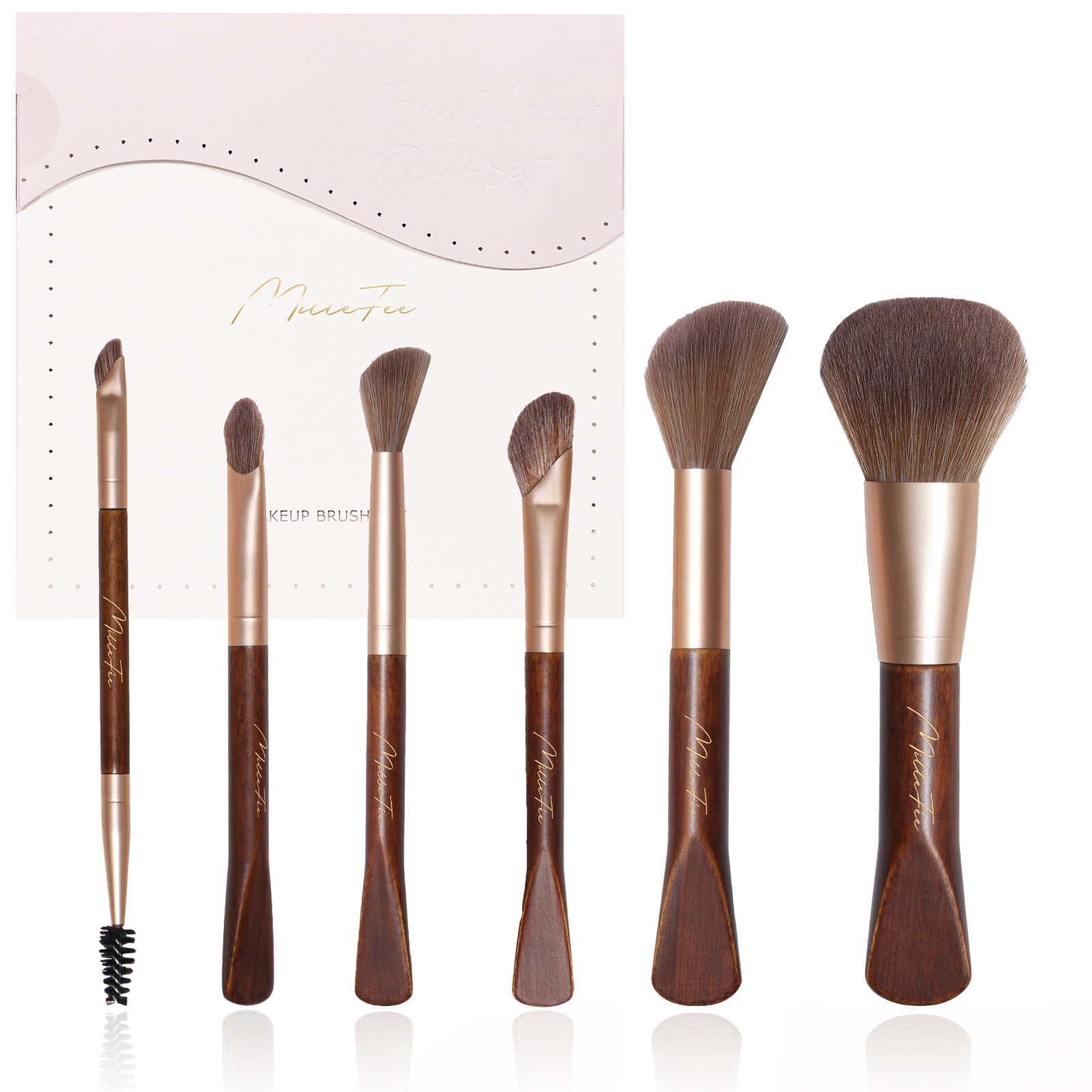 大口注文・法人のお問い合わせはこちら基本から応用まで、このワンセットでメイクアップが完璧に。パウダーブラシからアイブロウブラシまで、必要なものが全て揃っています。 斜めカットの人工毛で肌に優しくフィットし、斜めカットされたウッド製ハンドルが使いやすさを追求。どんな肌質の方でも安心して使える、やわらかな肌触りを実現しました。
