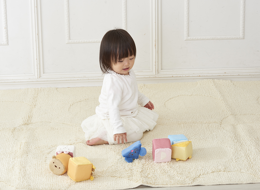 アニマルブロックは優しい肌触りが特徴的です。 布でできているため、ぶつけたりしても痛くないので安心して遊ぶことができます。 アニマルブロックのやわらかい触り心地に赤ちゃんもきっと夢中で遊ぶこと間違いなし。