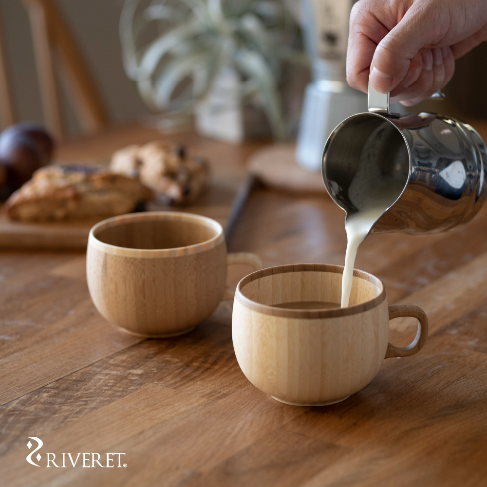 陶器や金属、ガラス製に比べ熱伝導率の低い天然素材製のRIVERET。 コーヒーやラテの味わいを邪魔しないその理由は、そそがれる液体や外気の温度に左右されず、うつわ自体の温度が安定していることにあります。 カラーは天然素材本来の色味をいかした高級感のあるホワイトと、高温で燻すことで色を変化させた趣のある色合いのブラウンをご用意。 ※RIVERET の食器は全て食洗機に対応しております。