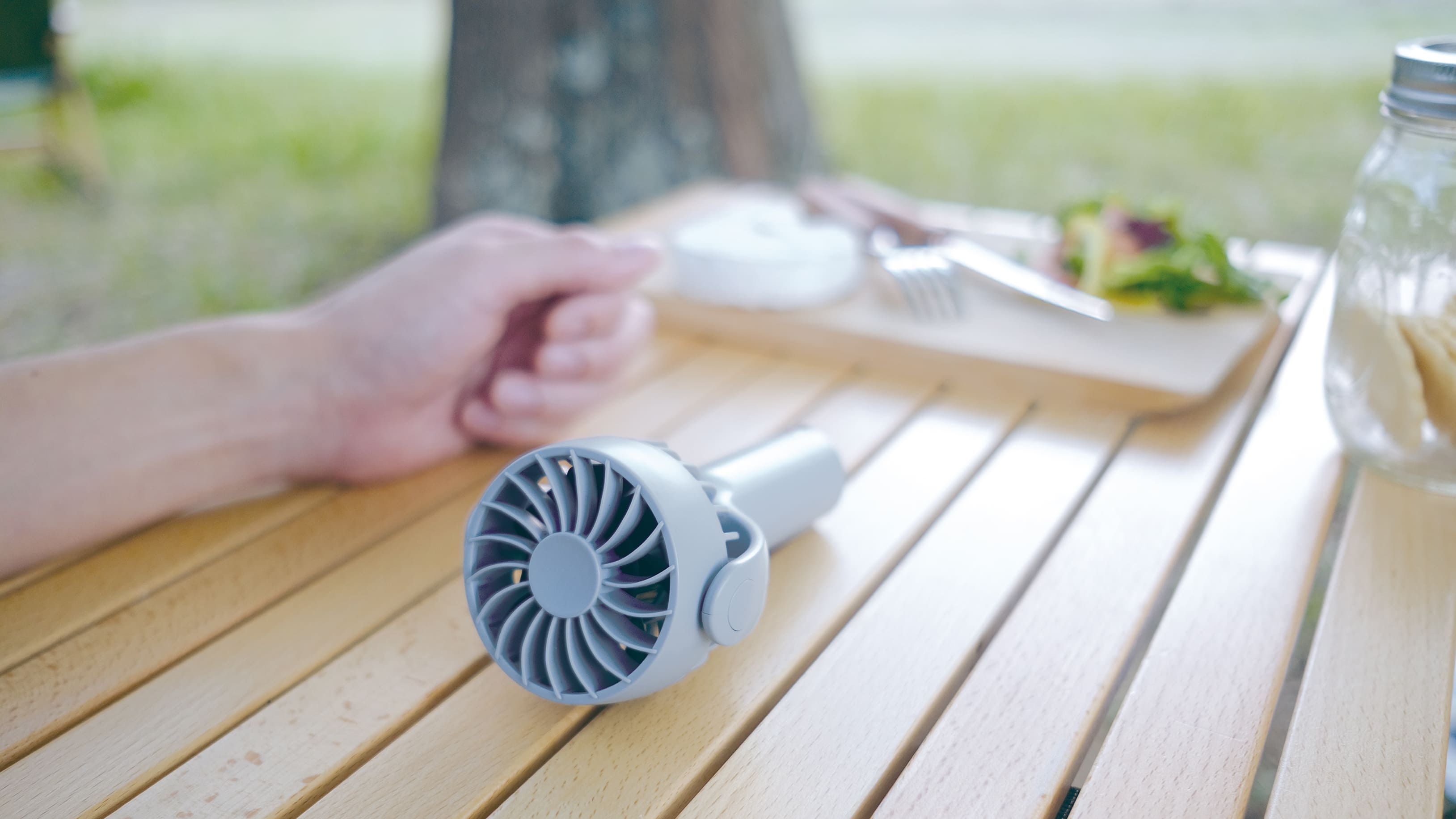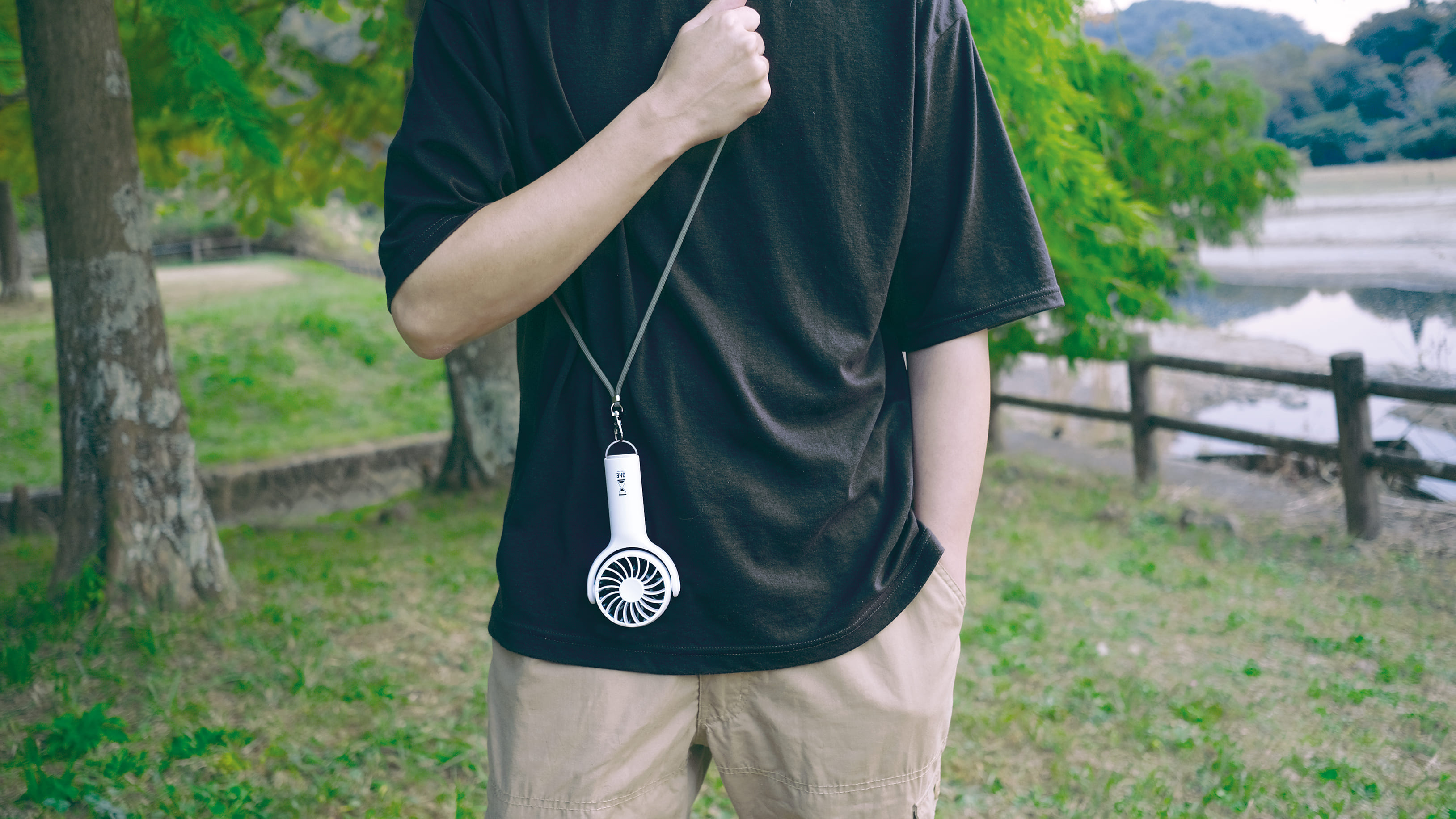 大口注文・法人のお問い合わせはこちら持ち運びに便利なハンドストラップと無段階調整のショルダーストラップも付属でちょっとした移動もハンズフリーです。Midの風量でも7.5時間運転の大容量バッテリー搭載、風の当たりすぎを防止する自然風モード搭載です。置いても使えます。 アウトドアの活動の際に活躍するハンディファン。アクティブなシーン、パーソンに最適です。