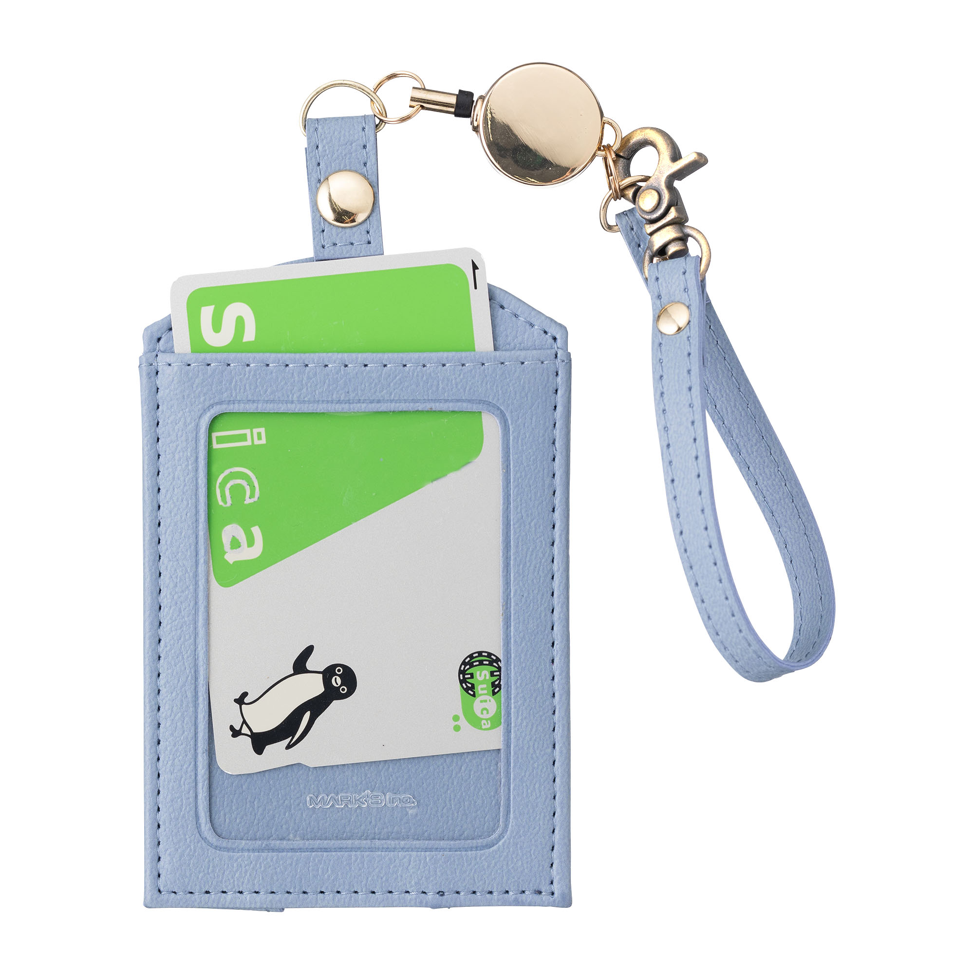 大口注文・法人のお問い合わせはこちらなめらかなPUレザー地に箔押しロゴがシックなデザインのリールタイプのパスケースです。 艶やかなテクスチャーで上品な華やかさが人気のウォームベージュ、トープ、ピスタチオグリーンに加え、本革のようなシボ感にマットで柔らかな質感のあるシリーズが新登場。 絶妙なニュアンスカラーのマリーゴールド、スモークブルー、オフブラックの3つのカラーが仲間入り。