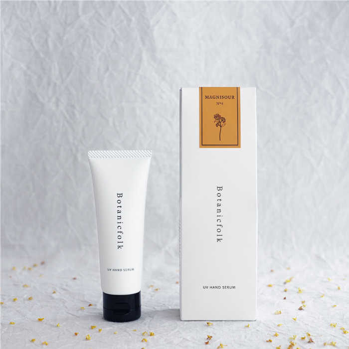 UVカットもできる手の美容液。UVカット成分を含むマイクロカプセルによって、UVカット効果だけでなく、美容効果もあります。お肌に負担をかけない優しい処方が魅力。Botanicfolkの人気のひとつであるこだわり抜いた香りもお楽しみください。
