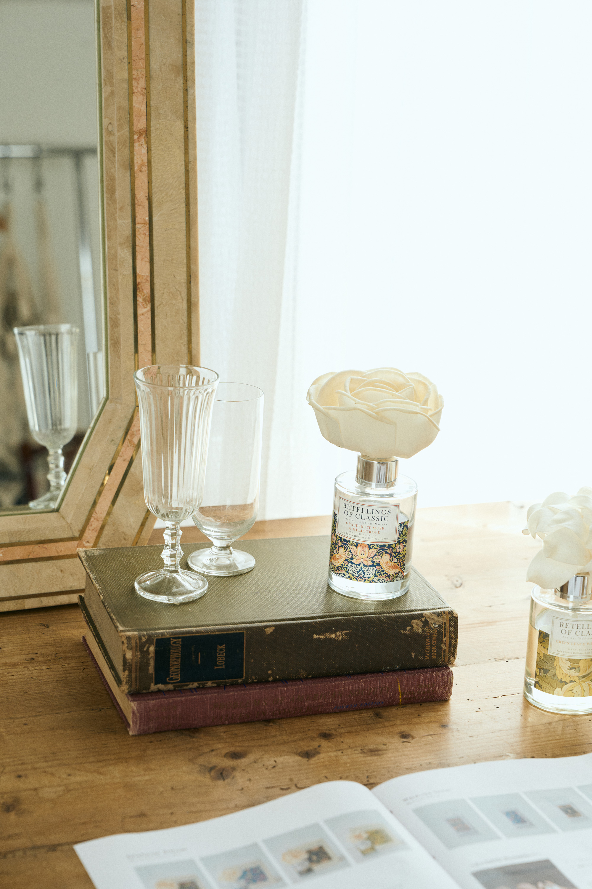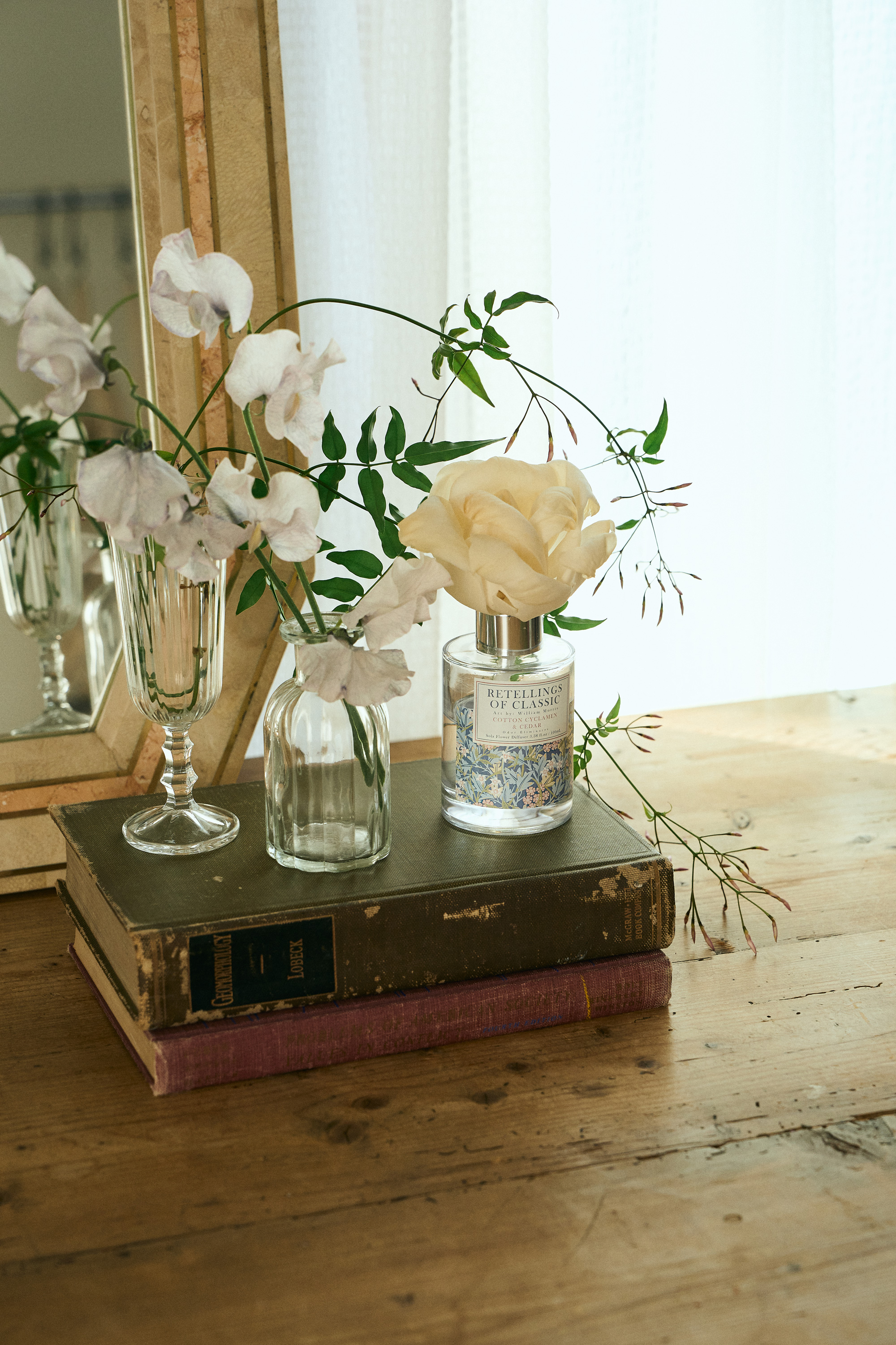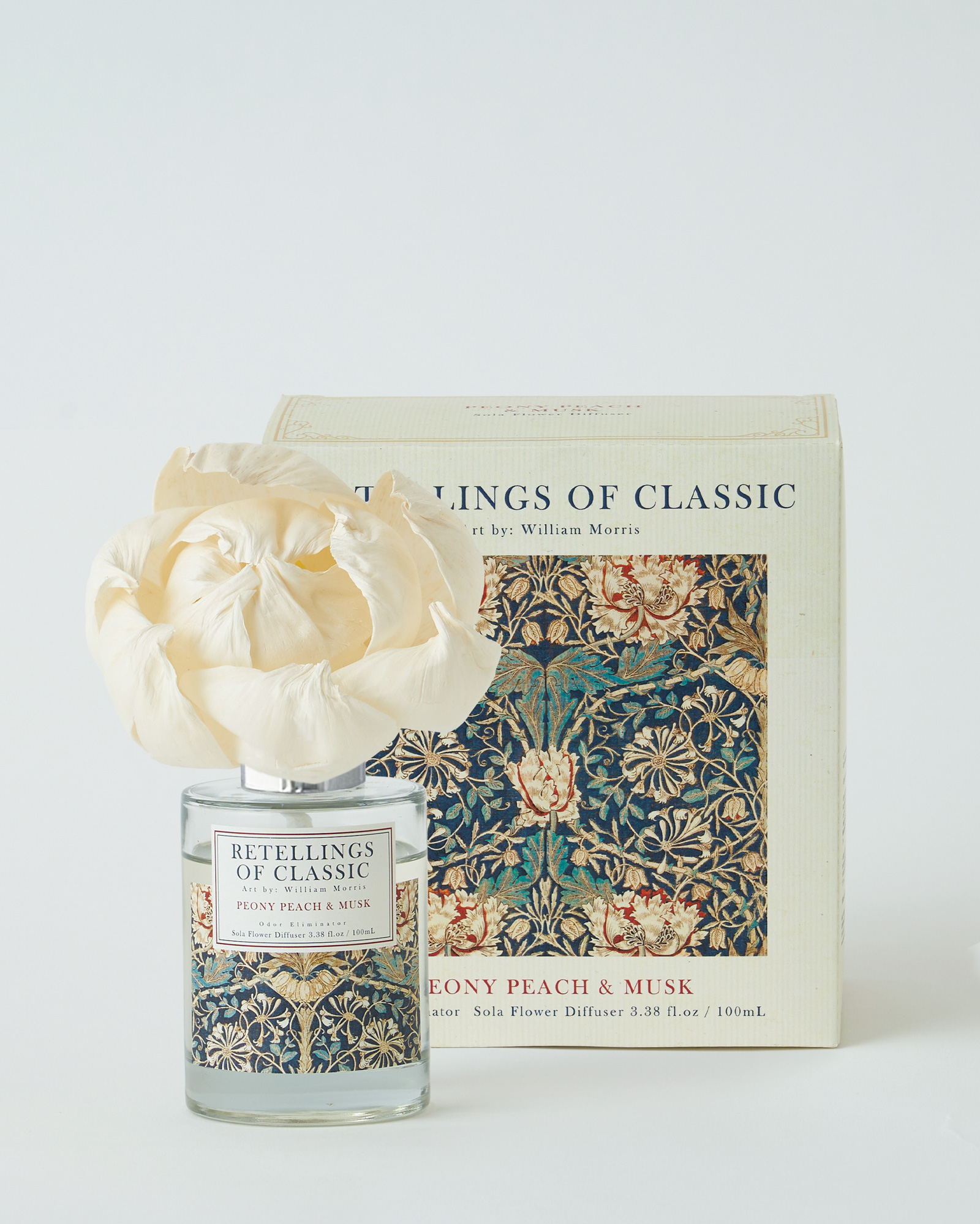 ソラフラワーディフューザーは、ウィリアム・モリスの美しいデザインモチーフを用い、職人によって細部までこだわり抜かれたフレグランスアイテムです。厳選された香りと消臭機能を兼ね備え、どんな空間も上質で心地よい雰囲気に変えます。