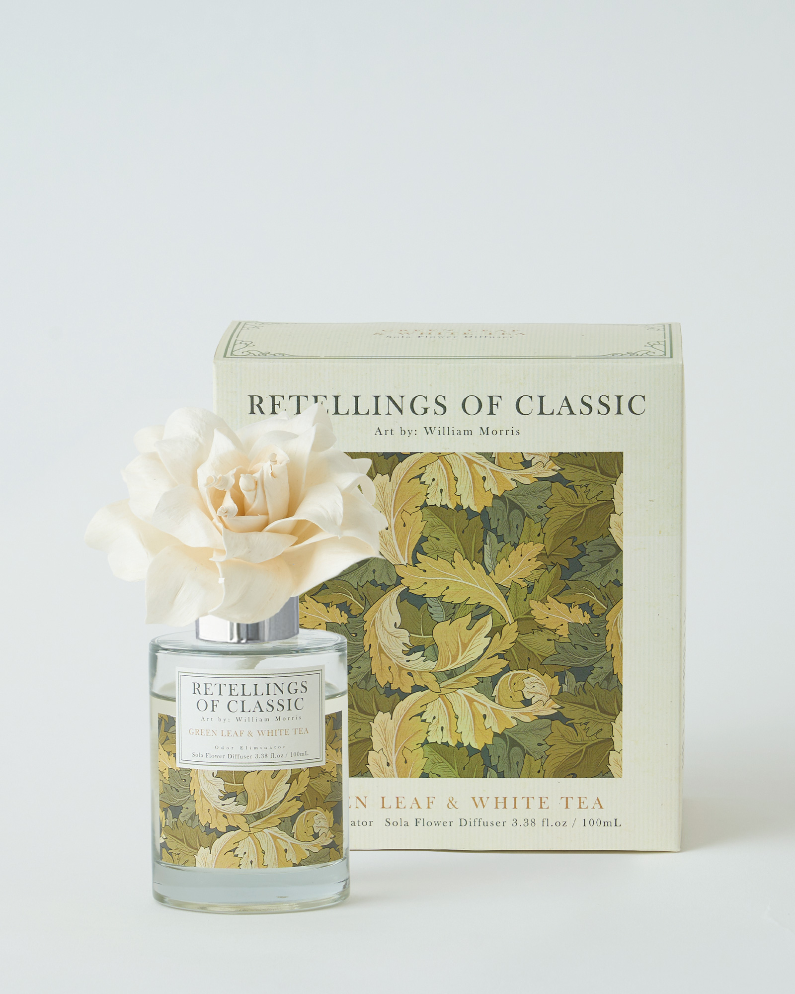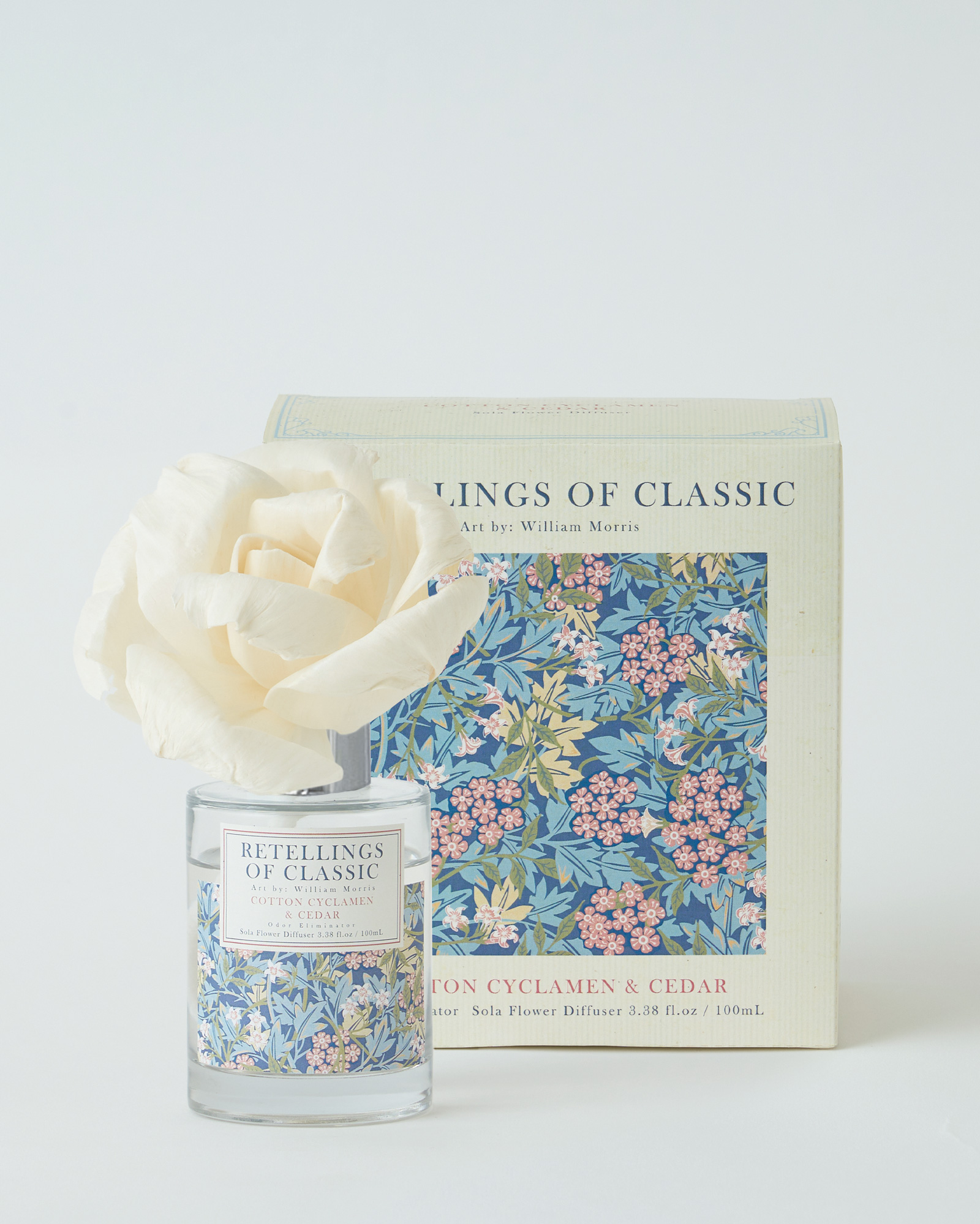 大口注文・法人のお問い合わせはこちらこのソラフラワーディフューザーは、19世紀の英国デザイナー、ウィリアム・モリスの美しいデザインモチーフを取り入れたアイテムです。細部にまでこだわったフレグランスアイテムは、選び抜かれた香りと共に、あなたの空間を上質なライフスタイルへと導きます。ソラフラワーの自然な美しさが、香りと共に部屋全体を優雅に彩ります。