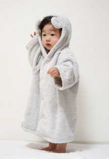 洗うたびにふっくら弾力が増すcocochienaベビーバスローブ。独自の「スイッチパイル」技術で、吸水性と膨らみをキープします。