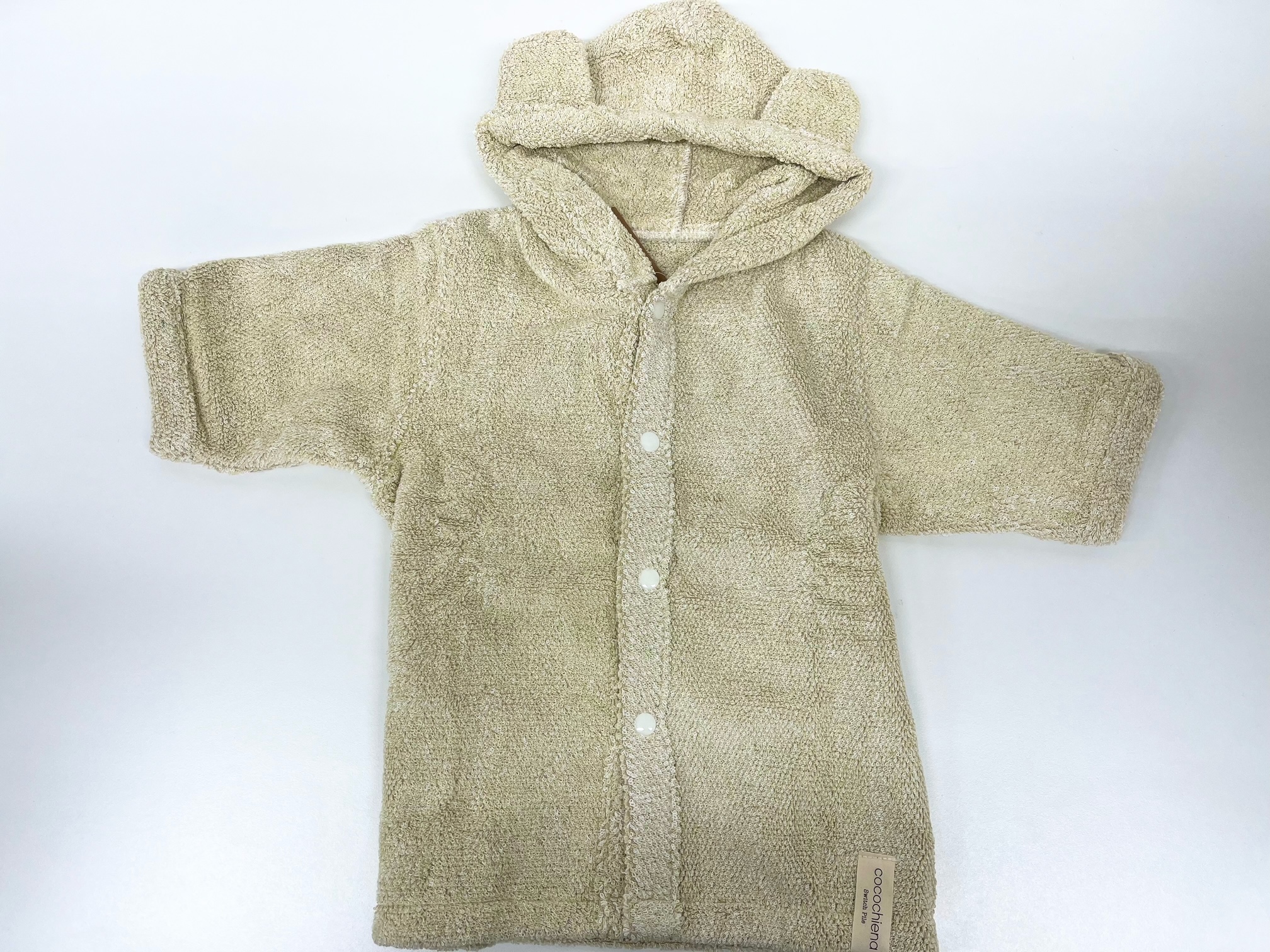 大口注文・法人のお問い合わせはこちら洗うほどに膨らむ、cocochienaのベビーバスローブ。赤ちゃんの敏感な肌をやさしく包みます。