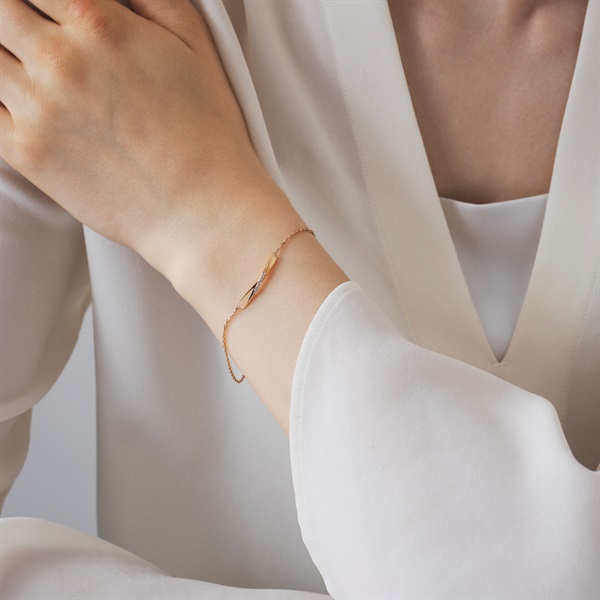 手首に滑らかに沿うフォルムで寄り添う心を表現した、ペアブレスレットをお届けします。