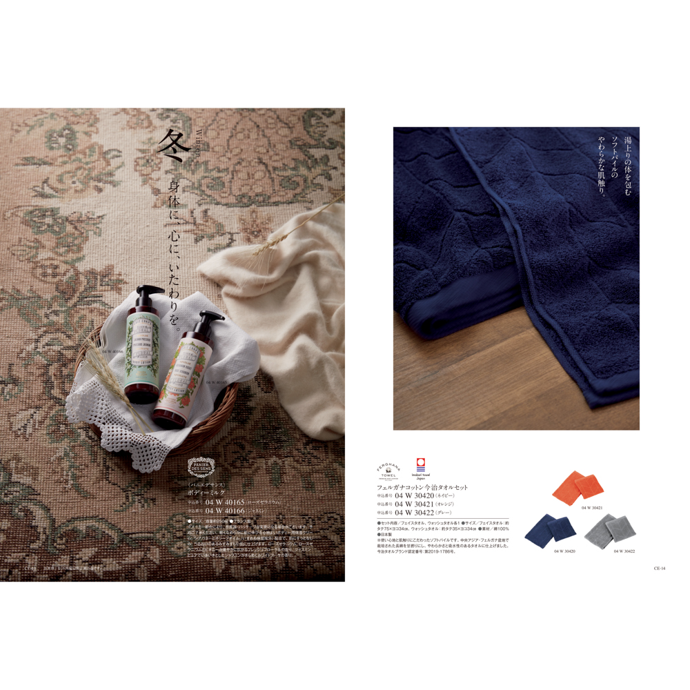 バリエーションに富んだ魅力的な品ぞろえと選ぶ楽しさを重視したカタログ。シックな表紙で弔事のお返しなど幅広くお使いいただける総合カタログです。