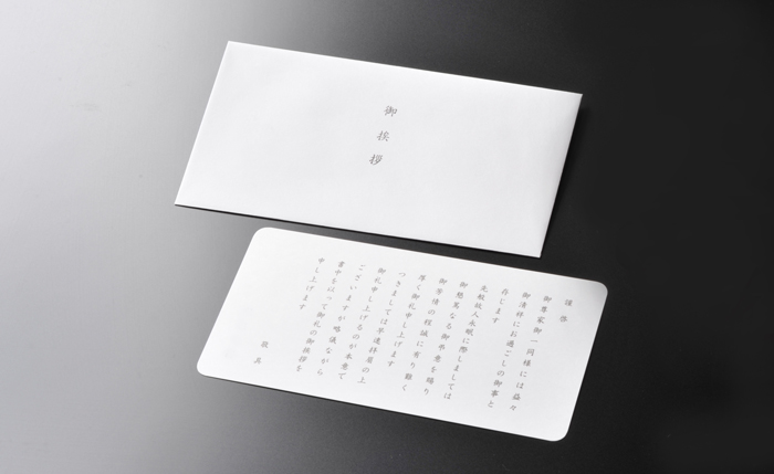 オプションで挨拶状をお付けできます。
