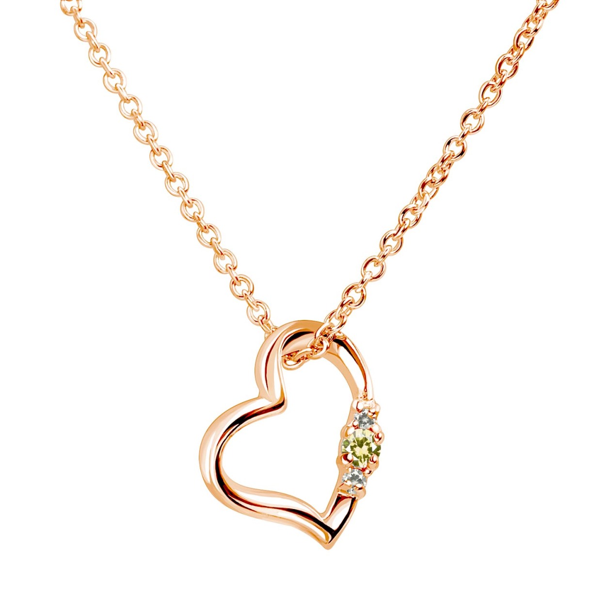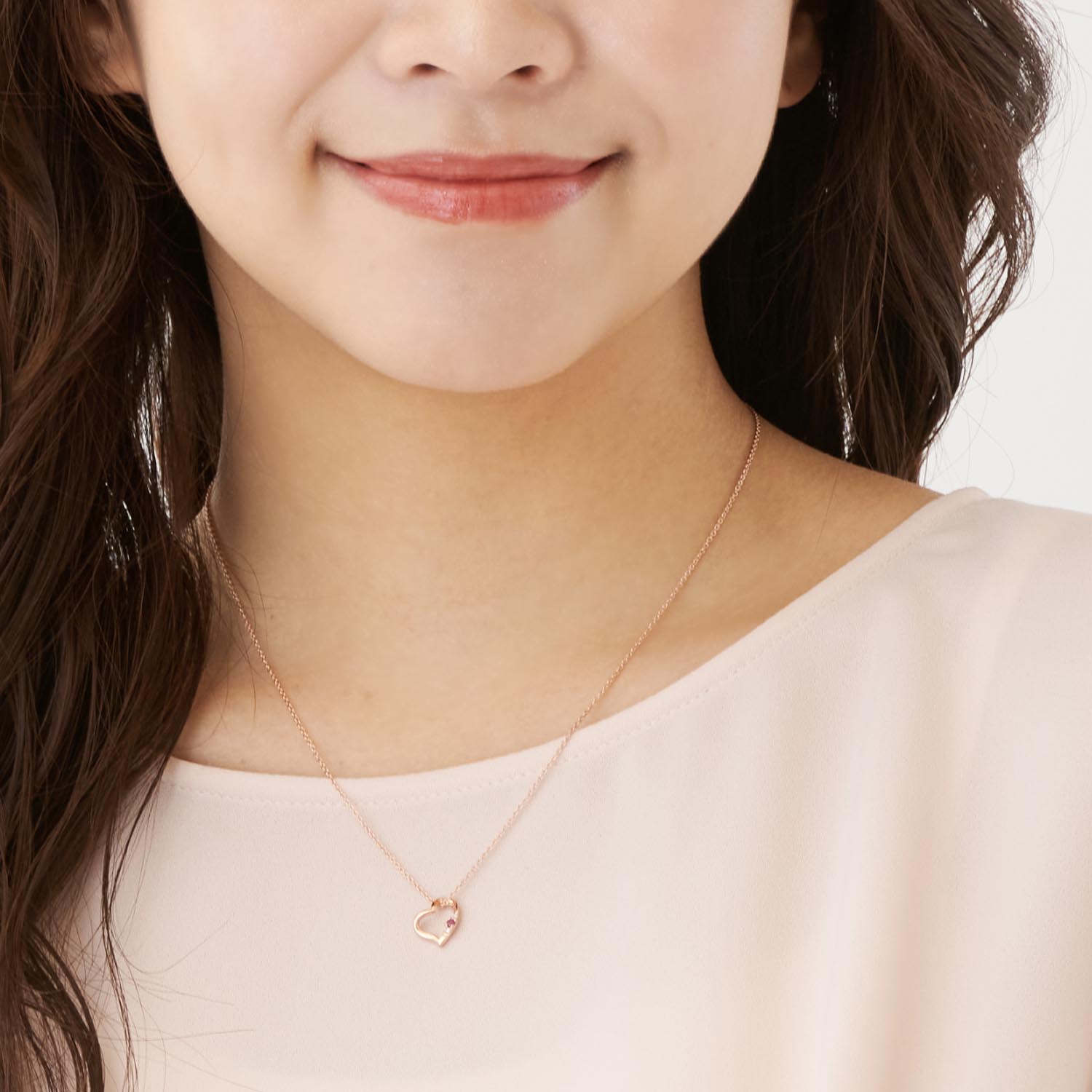 人気の高いオープンハートをモチーフにした誕生石ピンクゴールドのネックレス。中石には誕生石、脇石にはダイヤモンドがセッティングされています。ハートの形は柔らかな美しい曲線が特徴で、お顔周りを華やかに演出します。 洗練されたシンプルなデザインのため、流行に左右されません。普段使いやオフィスでのコーディネートにはもちろん、結婚式のワンピーススタイルなどにもおすすめです。