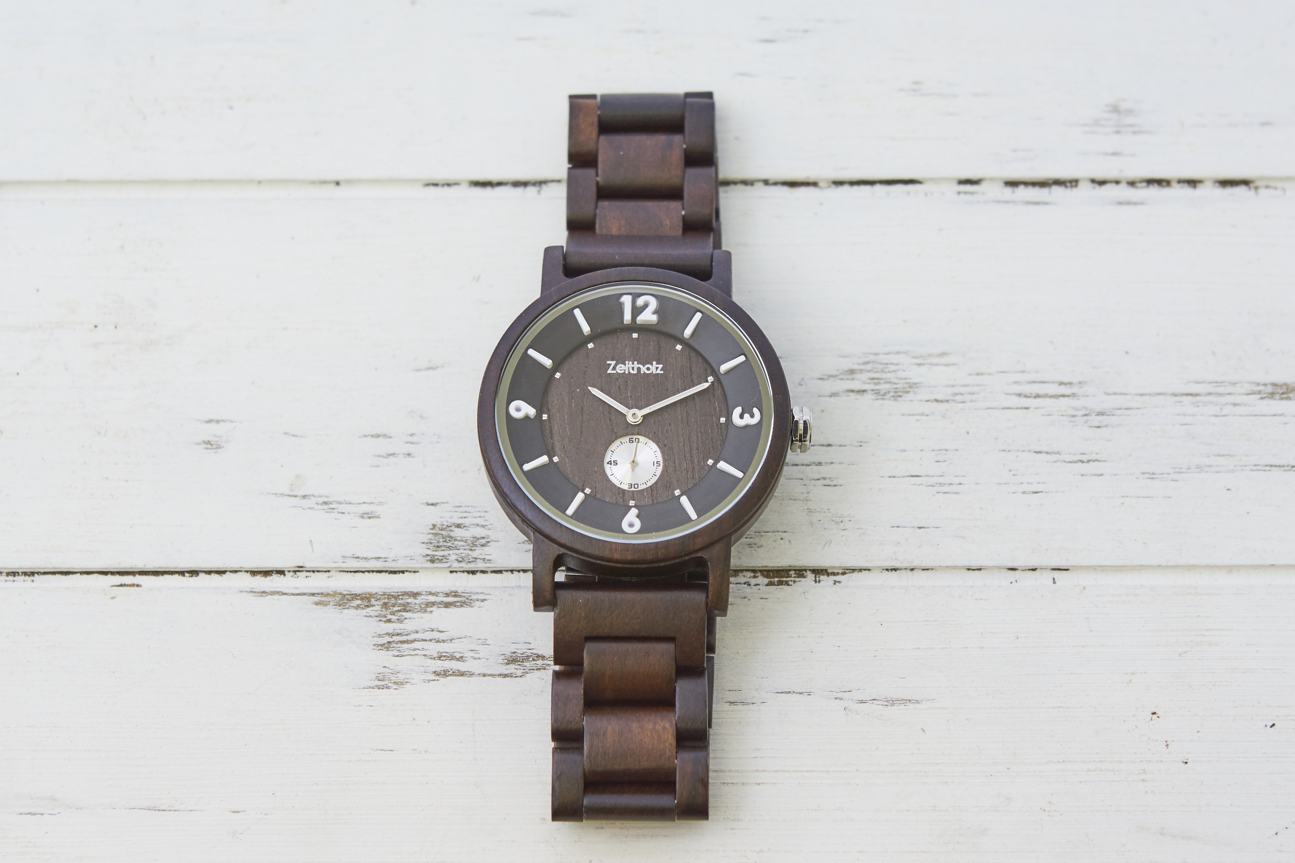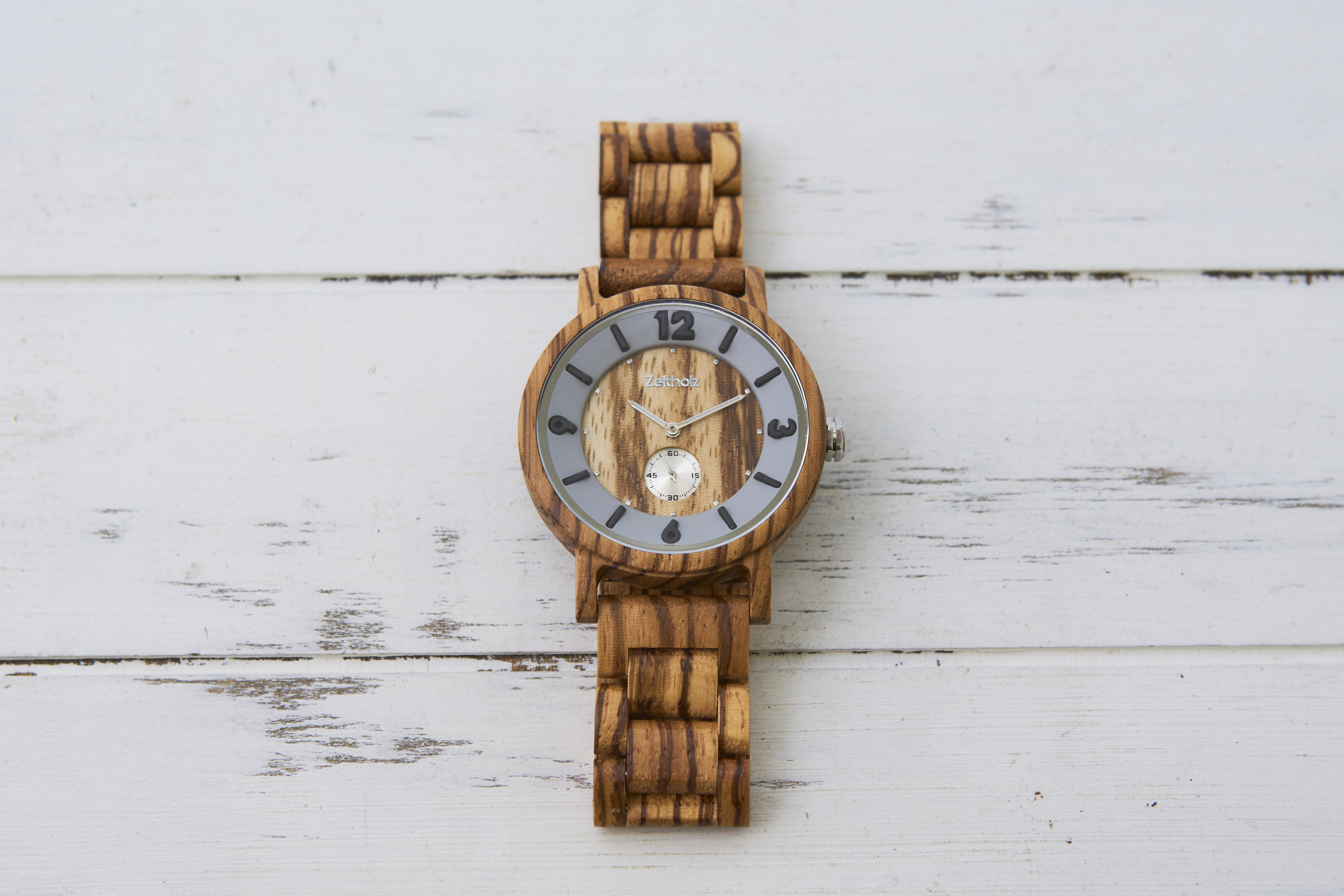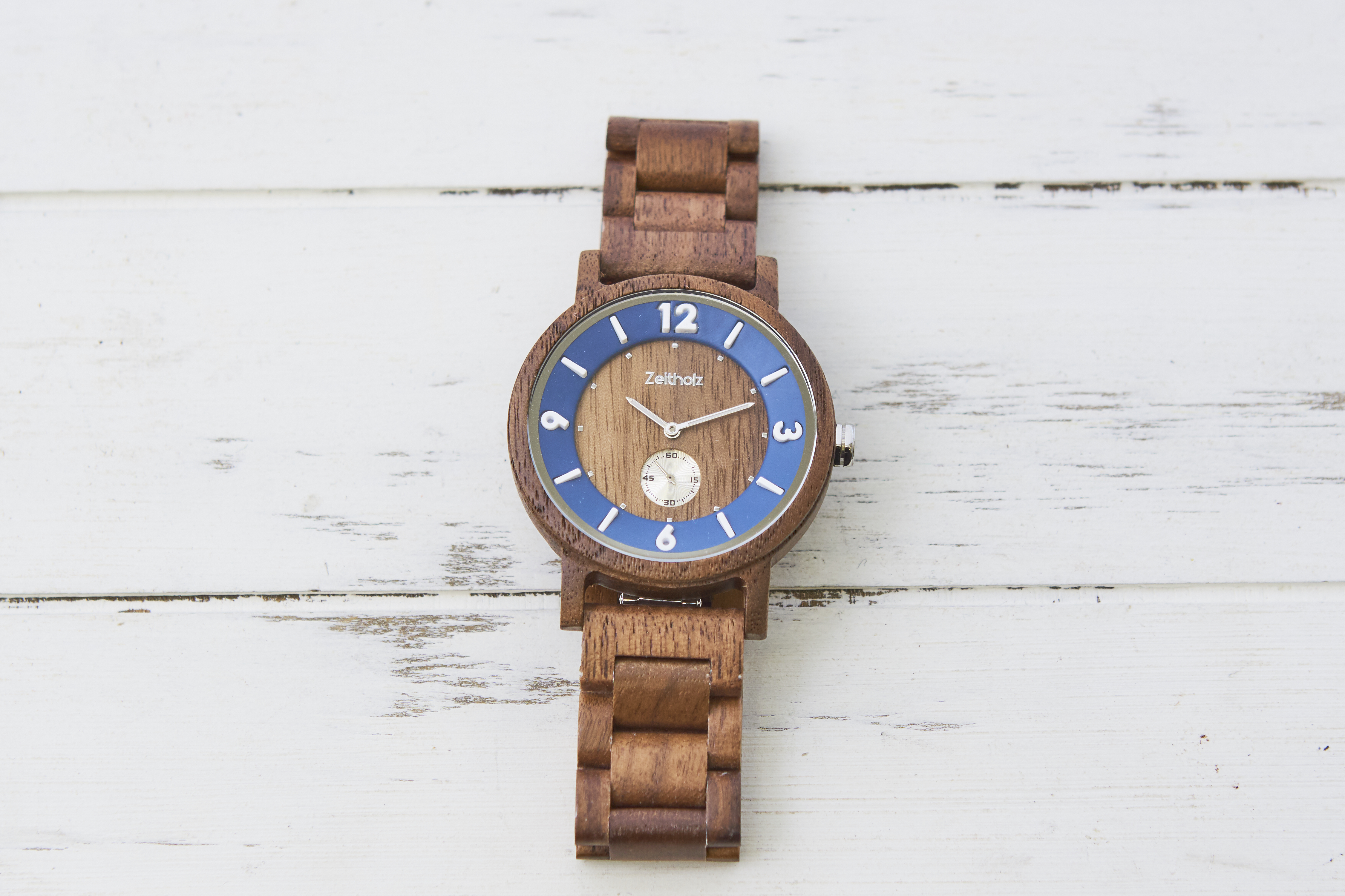 ドイツ発の木製腕時計ブランド【Zeitholz】の腕時計。文字盤内に木を使用し、時間も見やすくオシャレで普段使いにぴったりです。また、文字盤内に秒時計が入っており、他とはかぶらないユニークな仕様になっているのも特徴の1つです。生活防水にも対応しており、洗練されたデザインは見る者を魅了します。