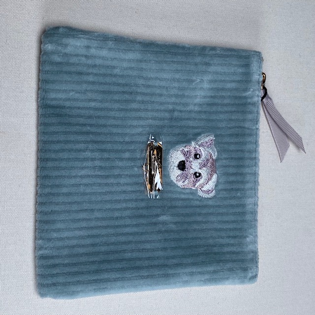 大口注文・法人のお問い合わせはこちら高級感のあるコーデユロイの生地にINUの刺繍をあしらった、とてもかわいいポーチが登場。 ちょっとした小物入れに最適です。