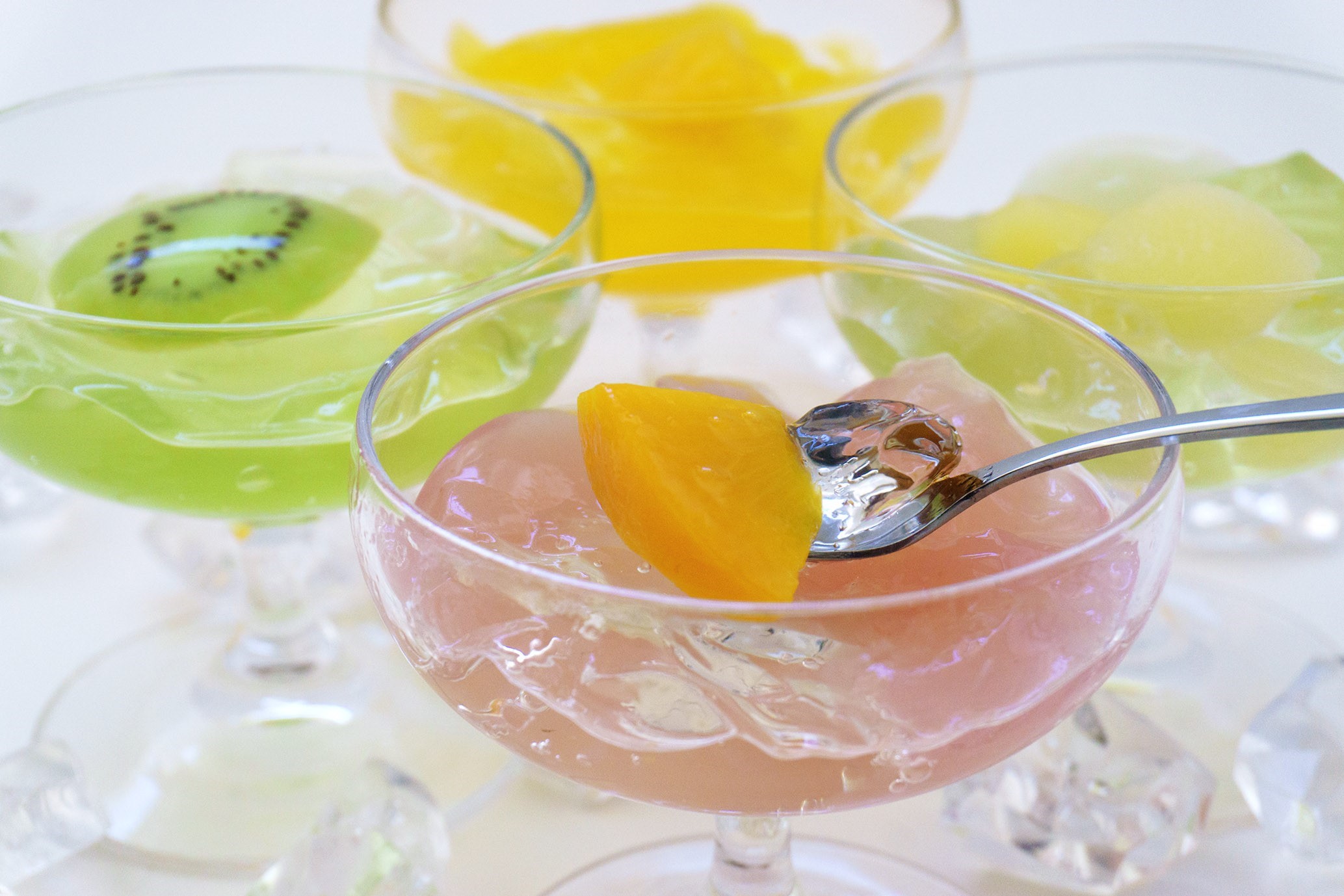 | 原材料 | ●果実ゼリー キウイ果肉×ぶどうゼリー 砂糖(国内製造)、キウイフルーツシラップ漬け、果糖ぶどう糖液糖、濃縮ぶどう果汁、還元水飴/ゲル化剤(増粘多糖類)、酸味料、香料、酸化防止剤(ビタミンC)、着色料(クチナシ、カロテノイド、青1、黄4)、 ●果実ゼリー マンゴー果肉×オレンジゼリー 砂糖(国内製造)、マンゴーシラップ漬け、果糖ぶどう糖液糖、濃縮オレンジ果汁、還元水飴/ゲル化剤(増粘多糖類)、酸味料、香料、酸化防止剤(ビタミンC)、着色料(カロテノイド)、 ●果実ゼリー 林檎果肉×梨ゼリー りんごシラップ漬け(中国製造)、砂糖、果糖ぶどう糖液糖、還元水飴、洋梨ピューレ/ゲル化剤(増粘多糖類)、酸味料、香料、酸化防止剤(ビタミンC)、着色料(クチナシ、カロテノイド)、 ●果実ゼリー 黄桃果肉×白桃ゼリー 砂糖(国内製造)、黄桃シラップ漬け、ももピューレ、果糖ぶどう糖液糖、濃縮もも果汁/ゲル化剤(増粘多糖類)、酸味料、香料、酸化防止剤(ビタミンC)、着色料(カロテノイド)、 |