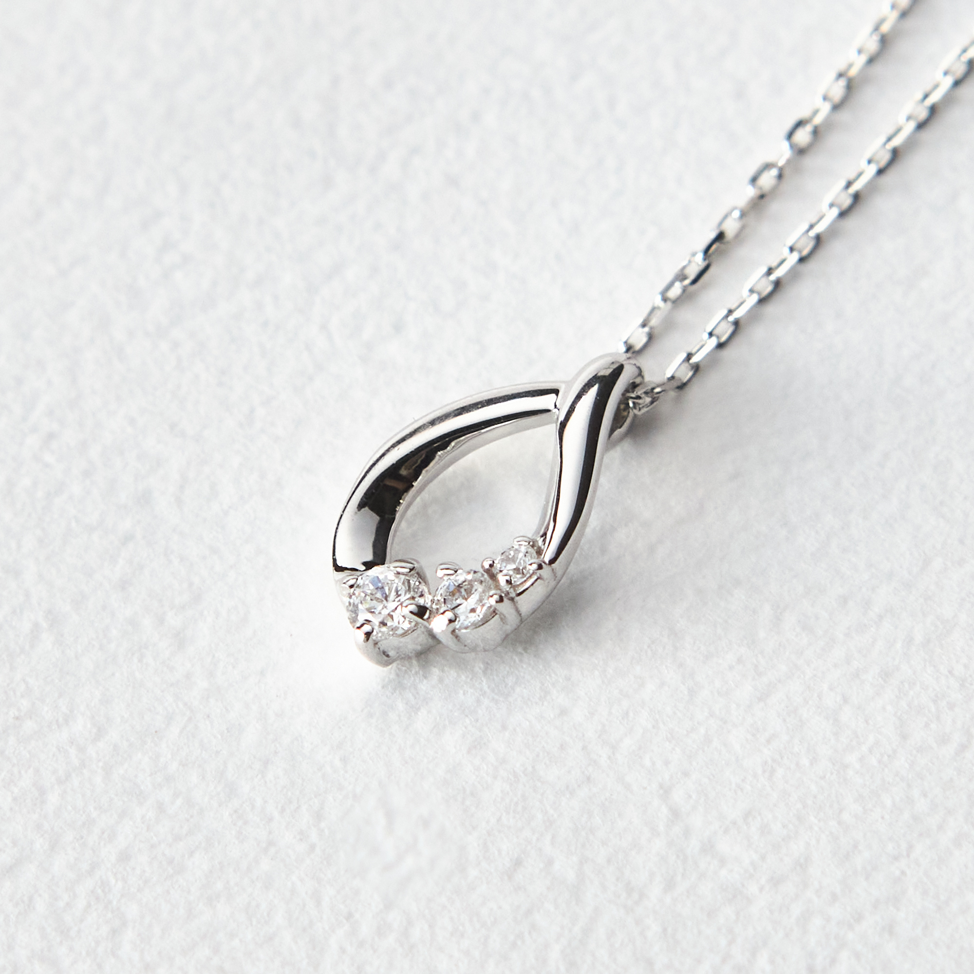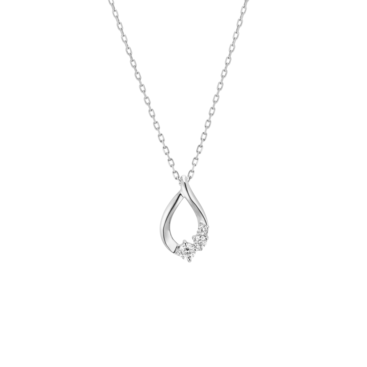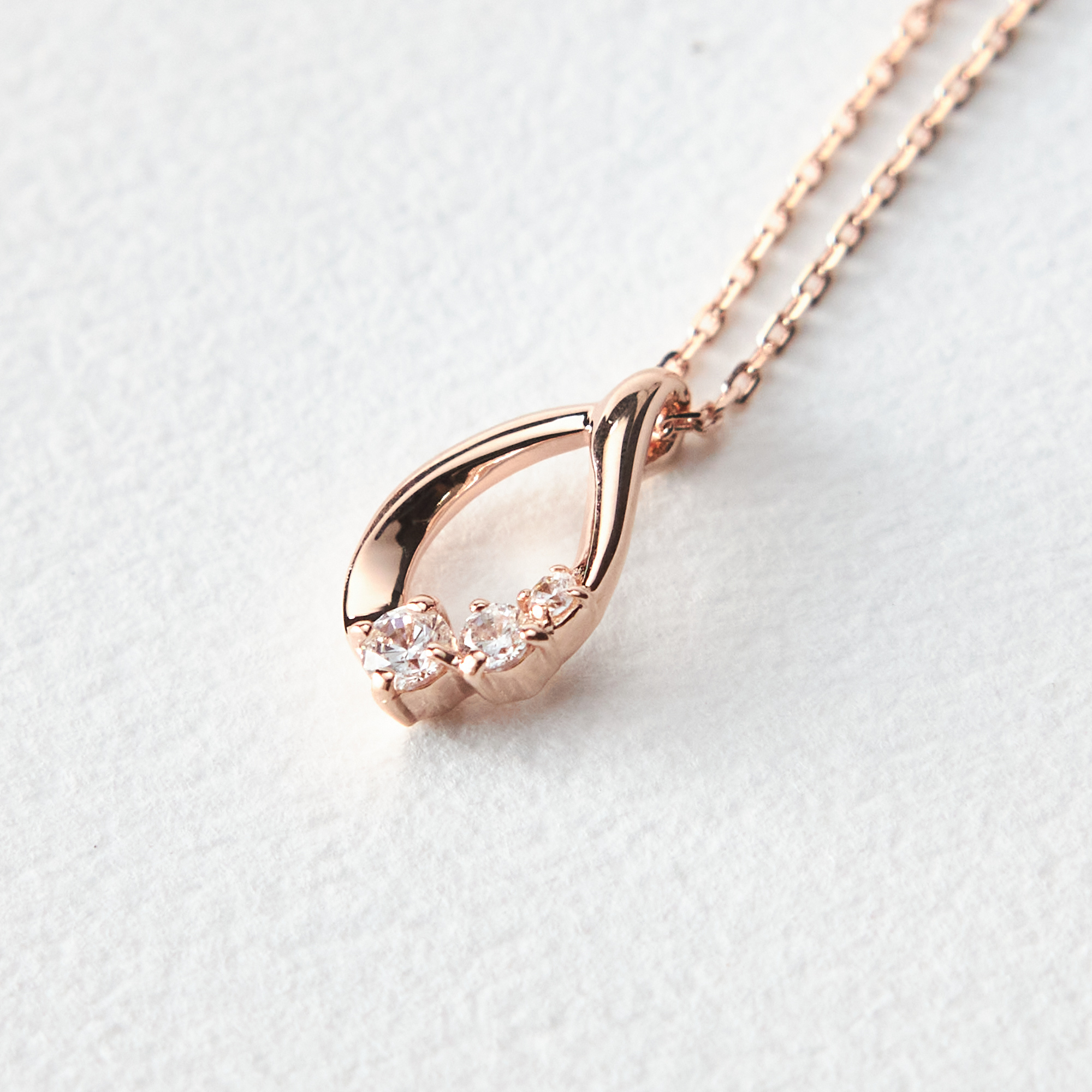 3石のキュービックジルコニアが煌めくしずくモチーフのネックレス。流れるような美しいラインで、日常から特別な日まで、どんなシーンにも馴染みます。装いを選ばず身に着けられ、贈り物にも最適です。