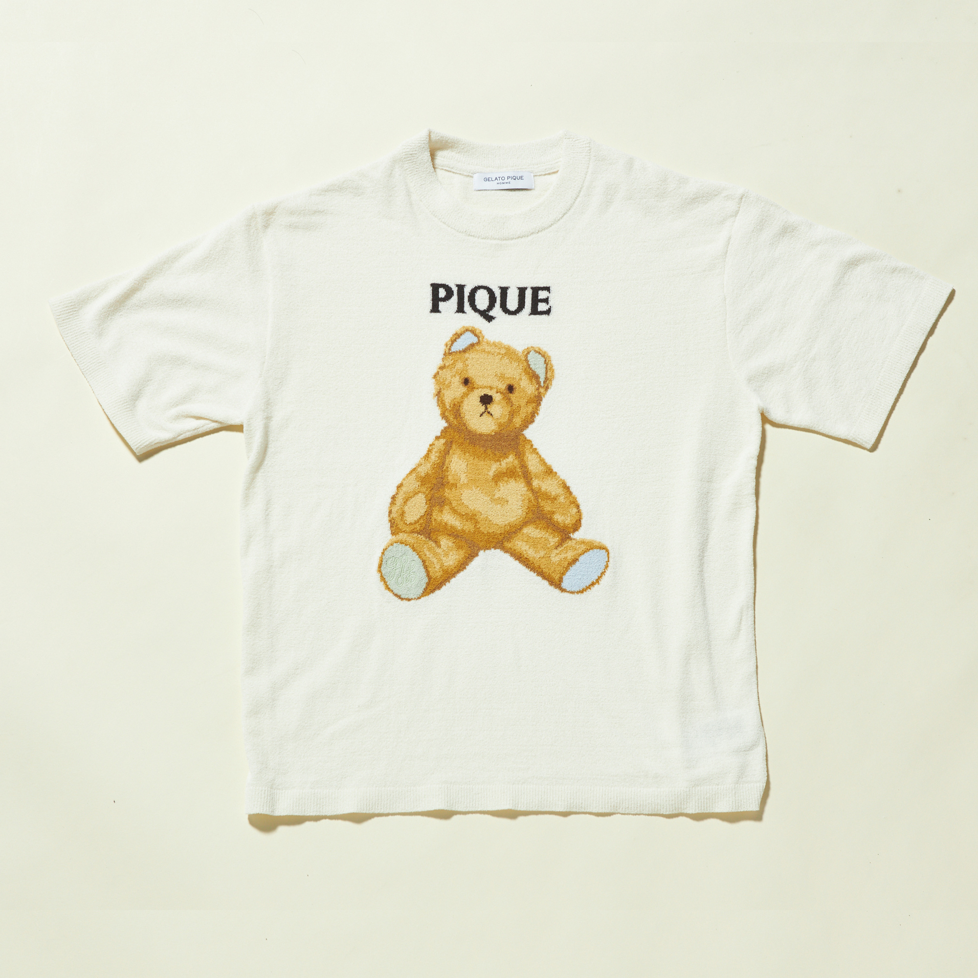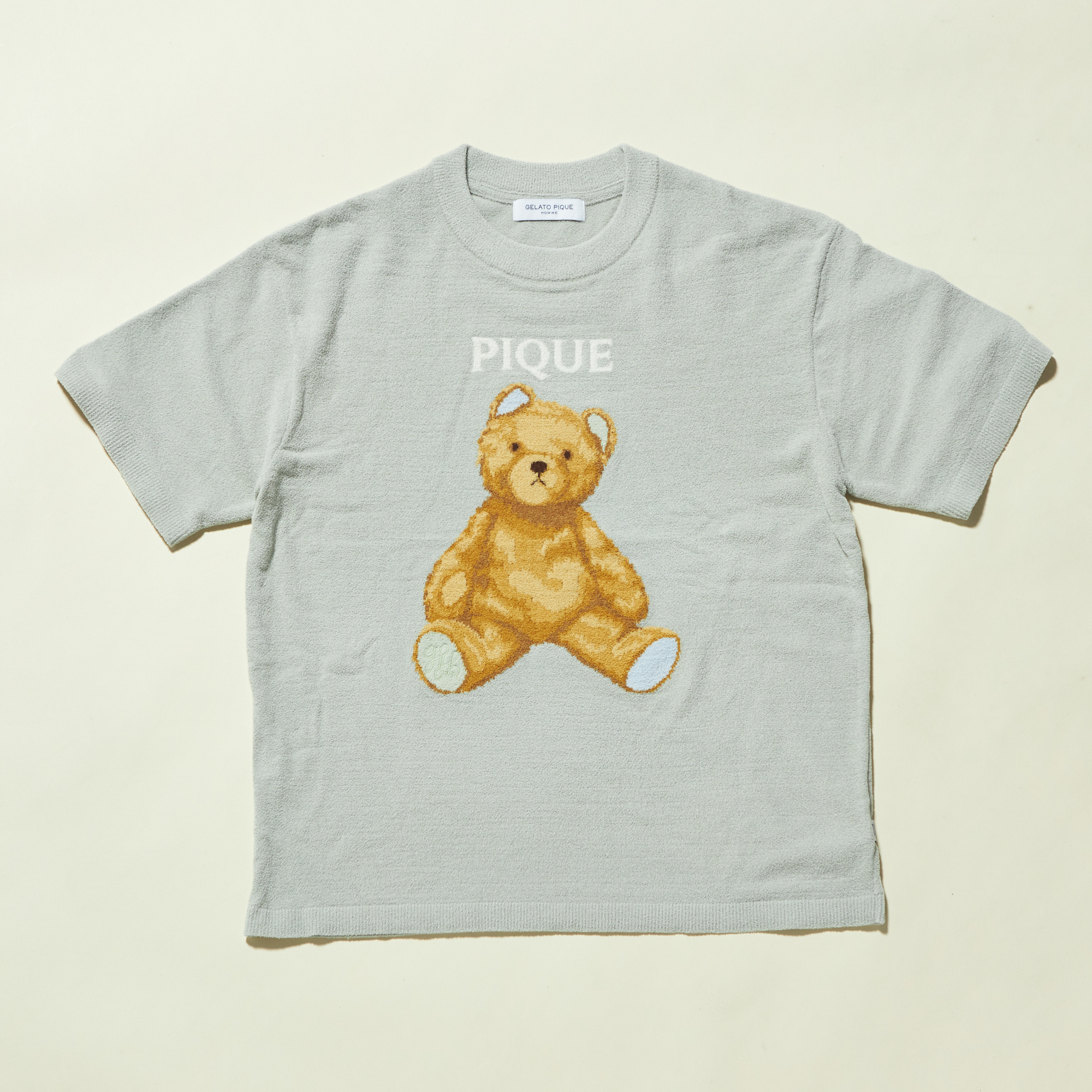 ピケベアモチーフのプルオーバーです。夏らしい爽やかな配色と、なんとも言えないおどけた表情のベアが可愛い一枚。