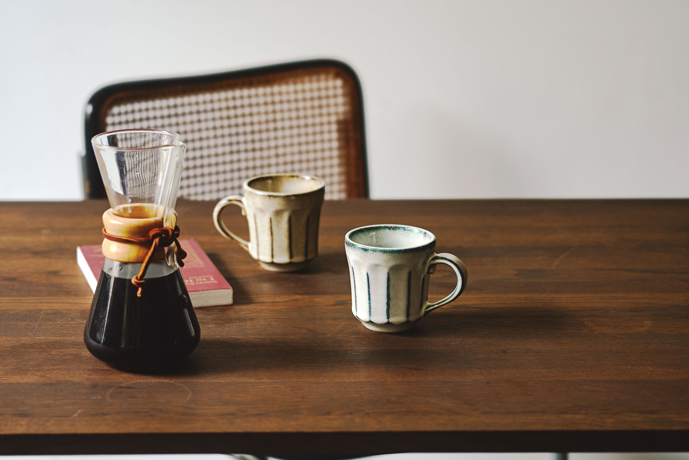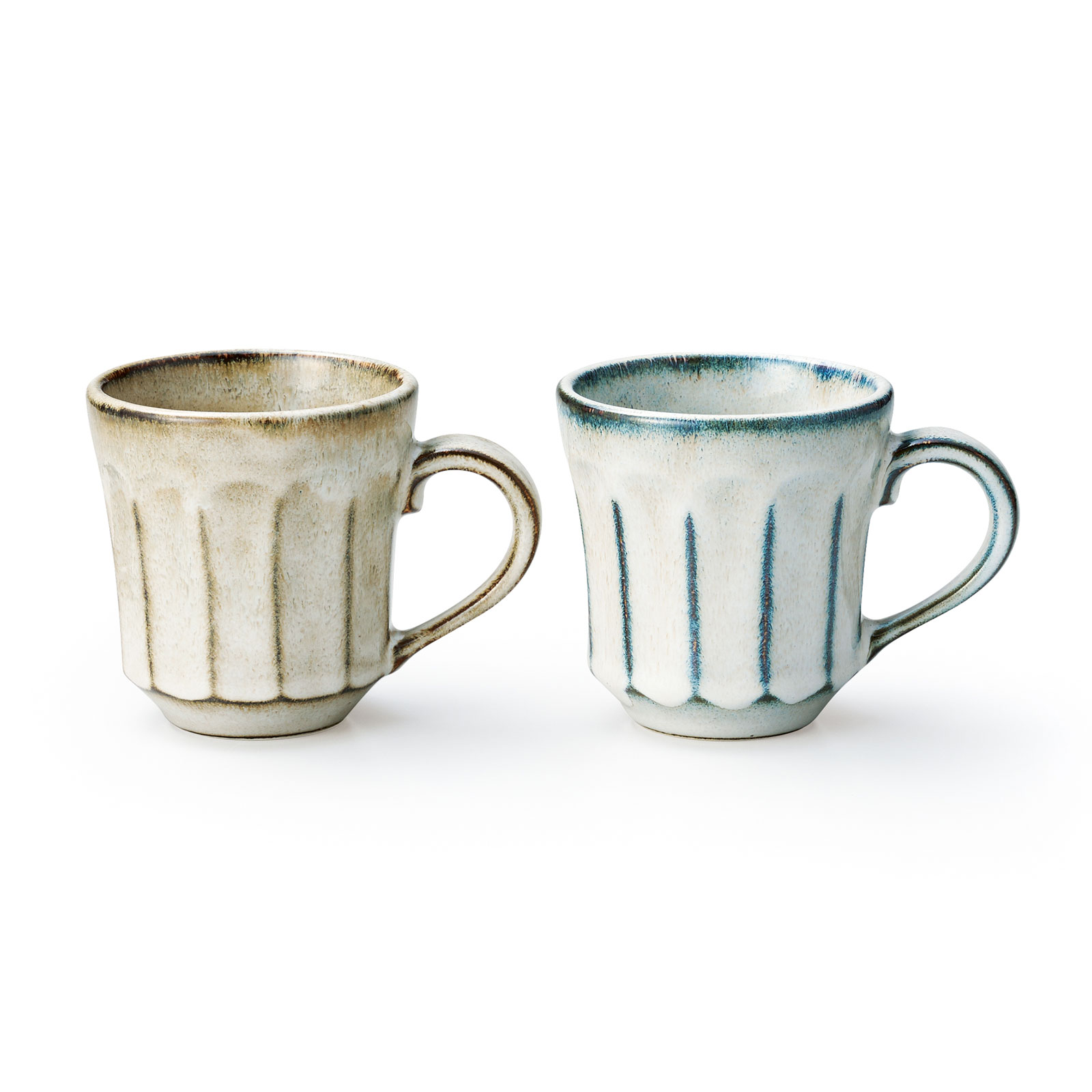 シンプルな形状で、日常使いにぴったりなペアマグカップです。釉薬の垂れ方や重ね方などひとつひとつ表情が違い、世界で一つだけの魅力を感じられます。釉薬の濃淡がストライプに出るのが味わい深く、飲み物を引き立てます。土のぬくもりが感じられる、素朴であたたかみがある陶器製です。