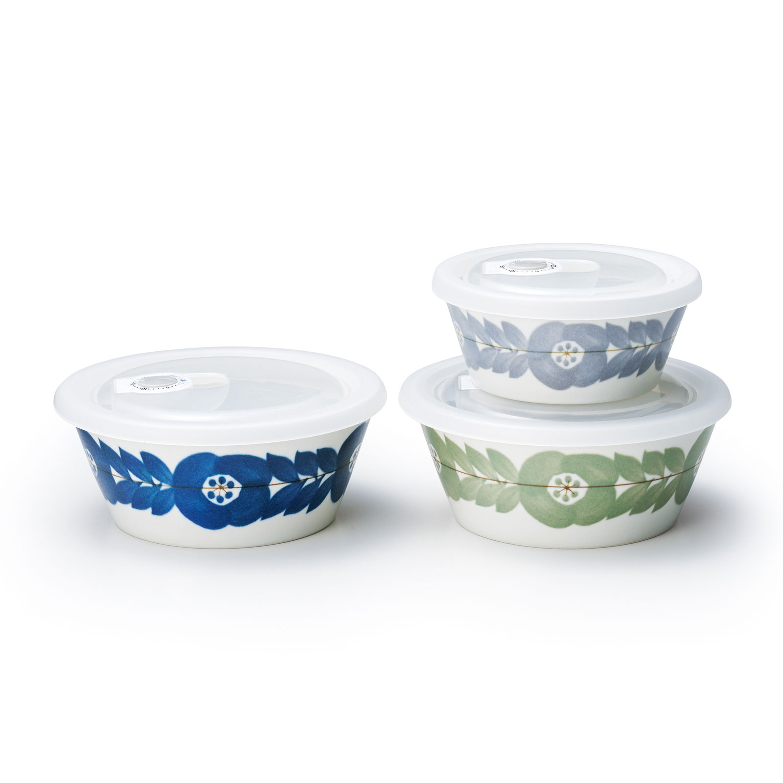 大口注文・法人のお問い合わせはこちら花のかんむりのような手描き風の花柄がステキなブロッサムレンジパック です。ボウルは食器として、フタをすれば保存容器になります。電子レンジOK、食洗機使用OKの使い勝手の良い便利な保存容器です。