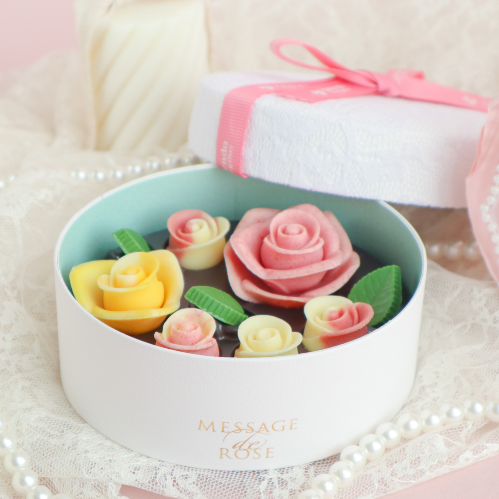 1989年に誕生したメサージュ・ド・ローズ(薔薇に込めたメッセージ)。 “愛と美の象徴である薔薇の美しさをチョコレートで表現し、 メッセージを込めたい”との想いからスタートしたチョコレートブランドです。 バラの繊細な形や曲線、厚みを忠実に再現し、まるで花びらを味わうような、繊細な口当たりとやわらかな味わいのチョコレートが特徴。チョコレートは全て自社アトリエにて生産し、百貨店でも人気のブランドです。