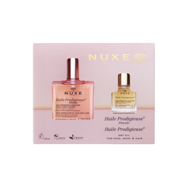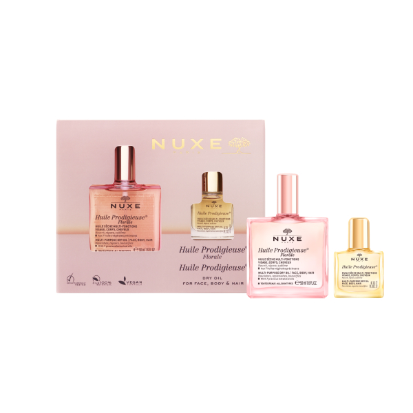 大口注文・法人のお問い合わせはこちら大人気のプロディジュー フローラル オイル(50mL)にプロディジュー オイル ミニ(10mL)がついたスペシャルセットが限定発売。 シュッと片手で使え、サラッとべたつかず、顔・体・髪にマルチに使える美容オイルです。春の新生活やギフトにもぴったり。ふたつの香りが楽しめる欲張りなキットです。