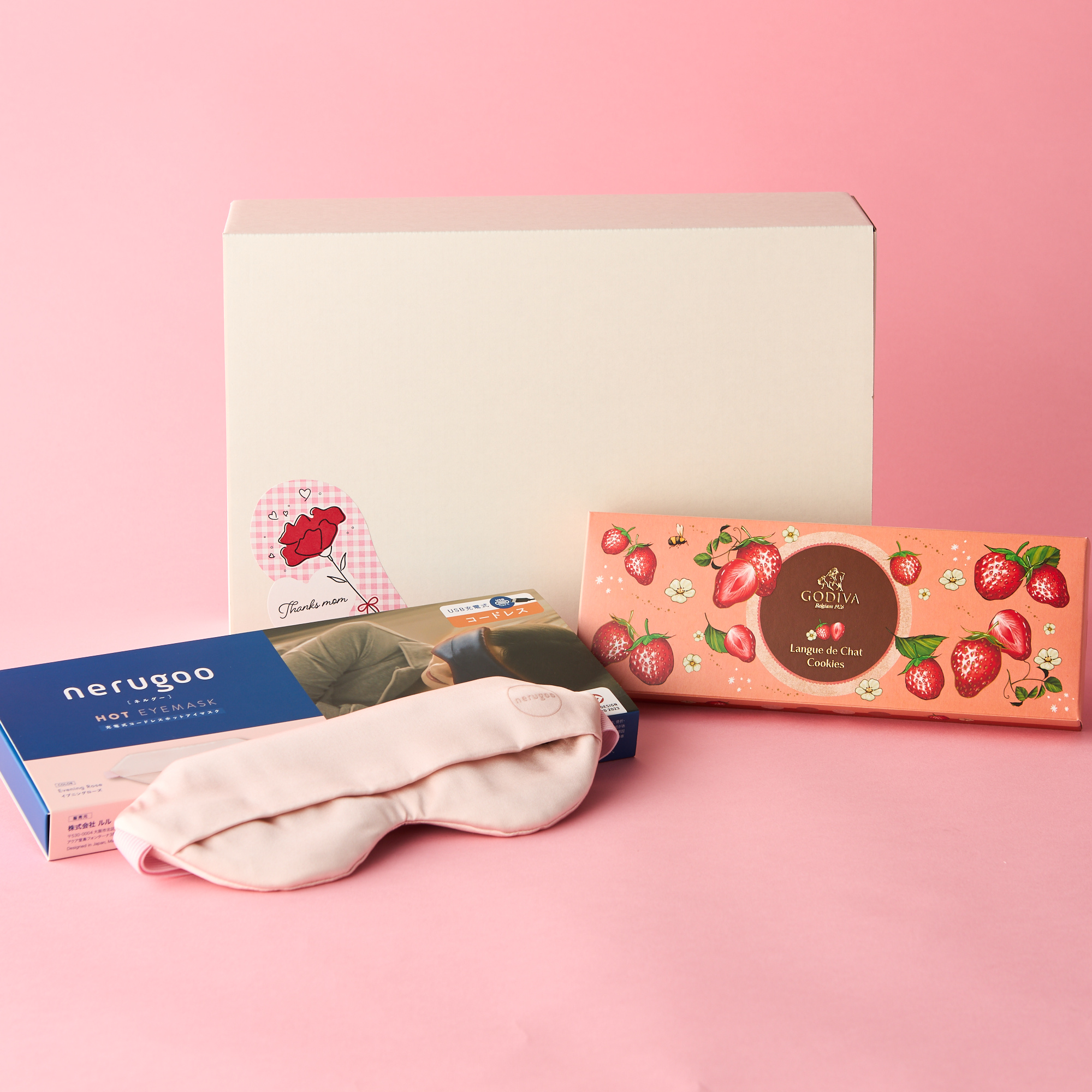 大口注文・法人のお問い合わせはこちら使いやすい高級シルク100%で作られたホットアイマスクと、世界で愛されるチョコレートブランド「GODIVA(ゴディバ)」 のラングドシャクッキーのセットです。 日頃の感謝を込めた贈り物にいかがでしょうか? ※ご選択いただいたセット内容によって販売価格が異なります。