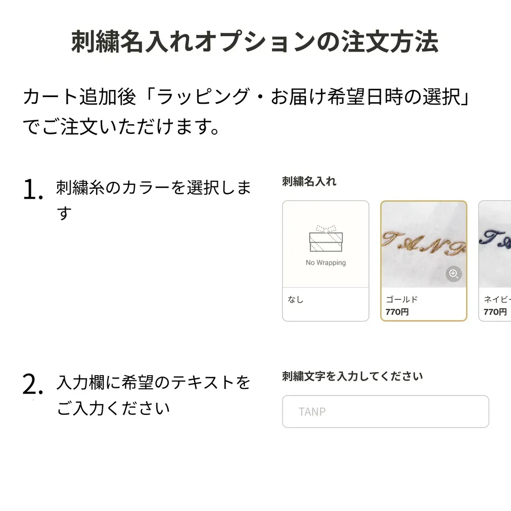 ハンドタオル・ハンカチを同梱してお届けいたします。ギフトへの+αにおすすめです。